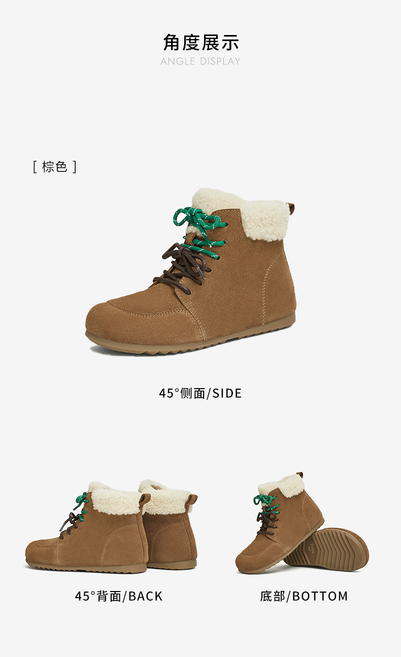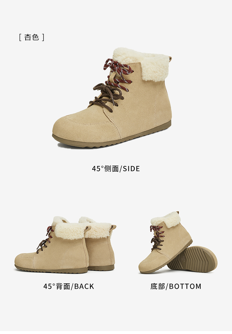 | 性别:女子 | 靴筒筒面材质:牛剖层革 | 里料材质:人造短毛绒 | 制鞋工艺:胶贴皮鞋 | 款式季节:冬季 |