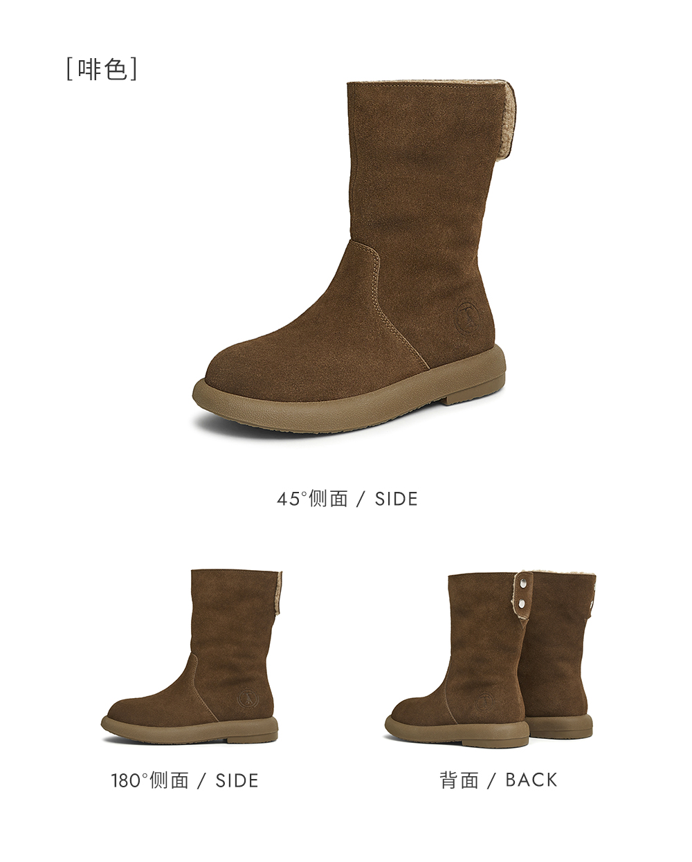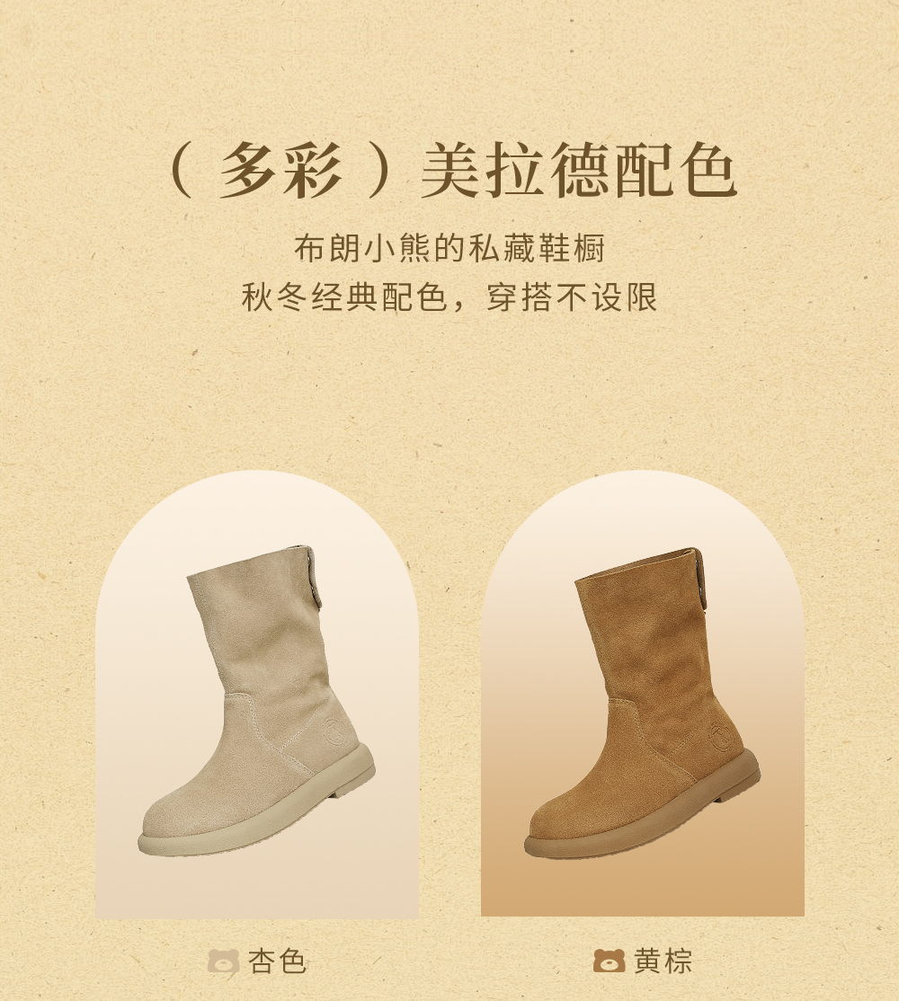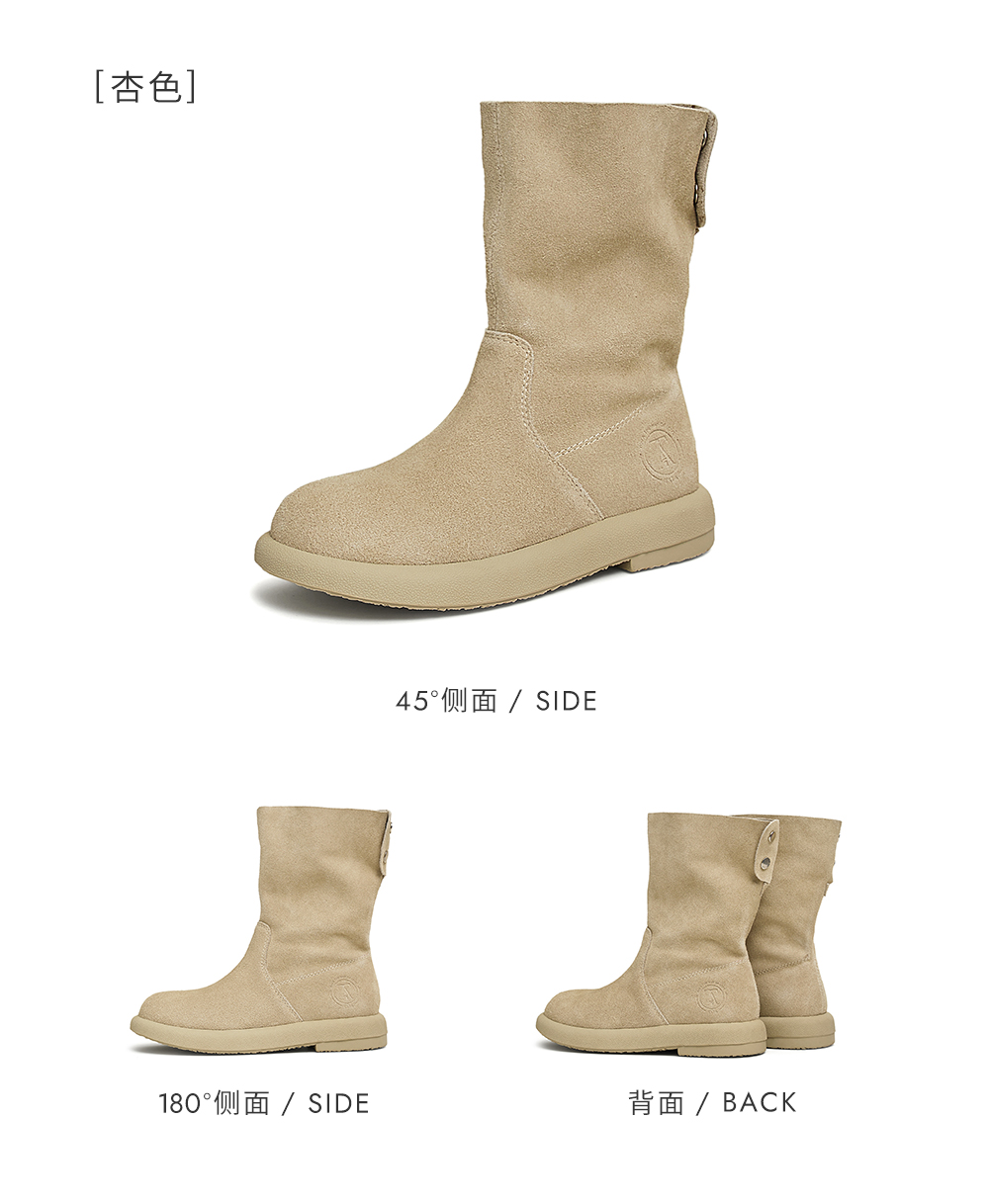 | 靴筒筒面材质:牛剖层皮革 | 靴筒小腿围:33CM | 里料材质:PU革织物面料 | 制鞋工艺:胶贴皮鞋 | 款式季节:冬季 |