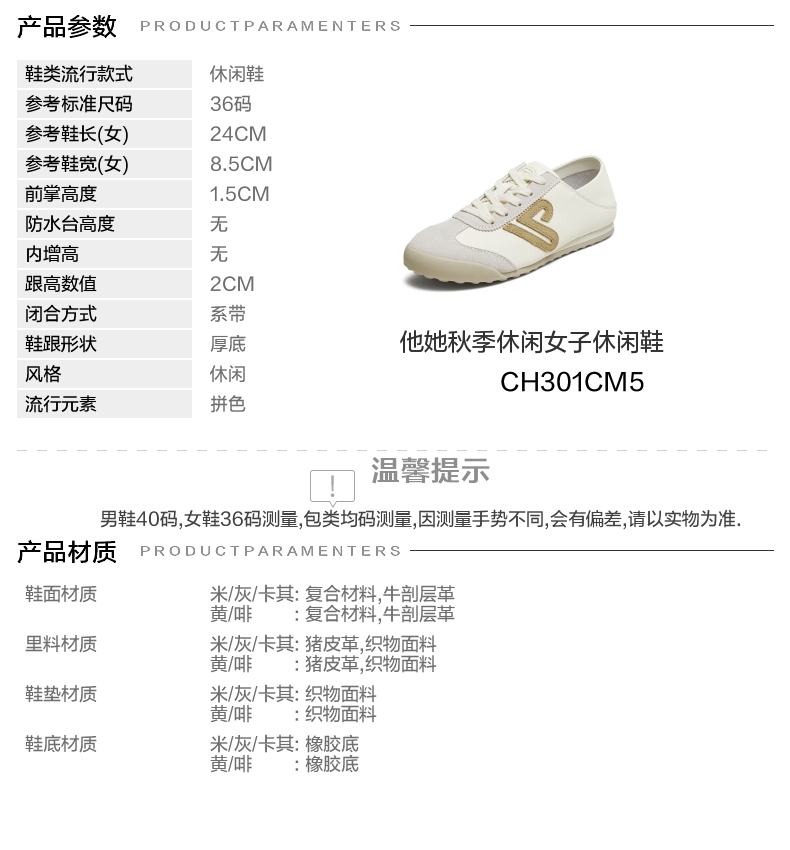 | 鞋跟形状:厚底 | 参考鞋长(女):24CM | 流行元素:拼色 | 参考鞋宽(女):8.5CM | 风格:休闲 |