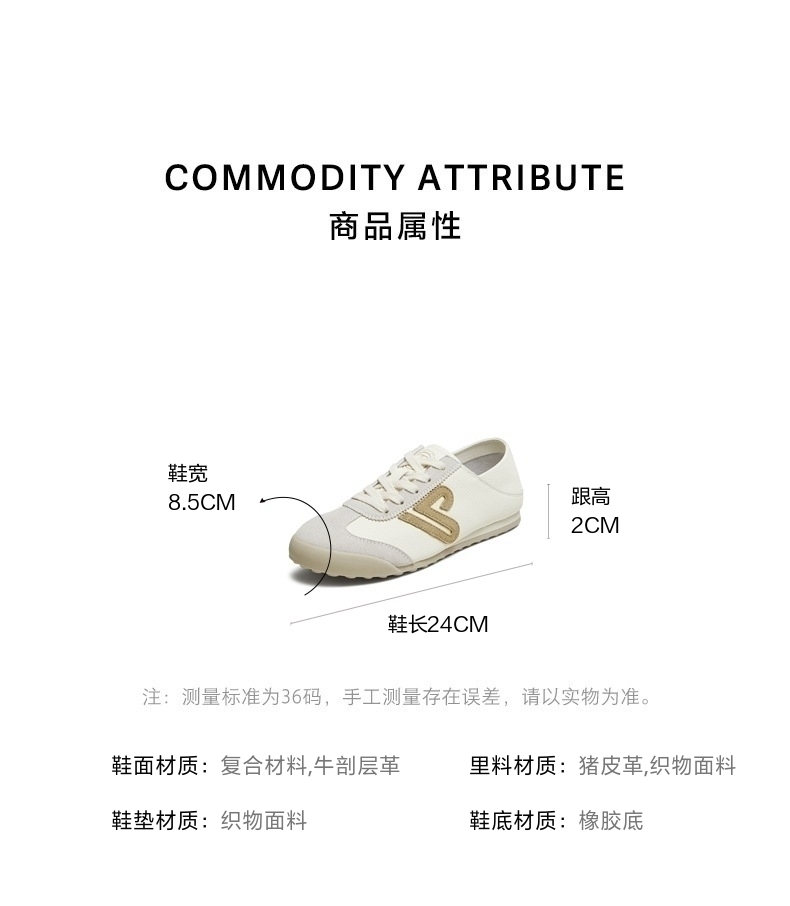 | 鞋帮:低帮 | 鞋底材质:橡胶底 | 内增高:无 | 鞋面材质:牛剖层革复合材料 | 闭合方式:系带 |
