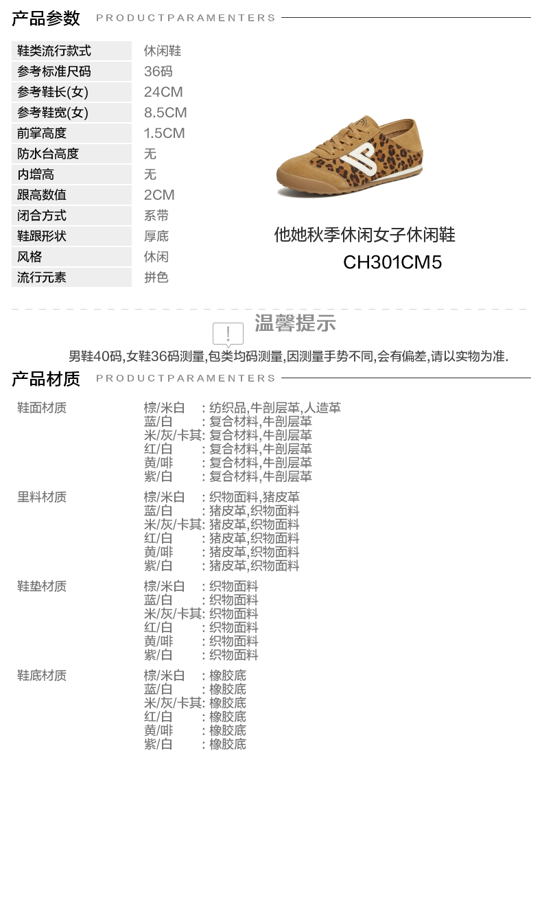 | 鞋跟形状:厚底 | 参考鞋长(女):24CM | 流行元素:拼色 | 参考鞋宽(女):8.5CM | 风格:休闲 |