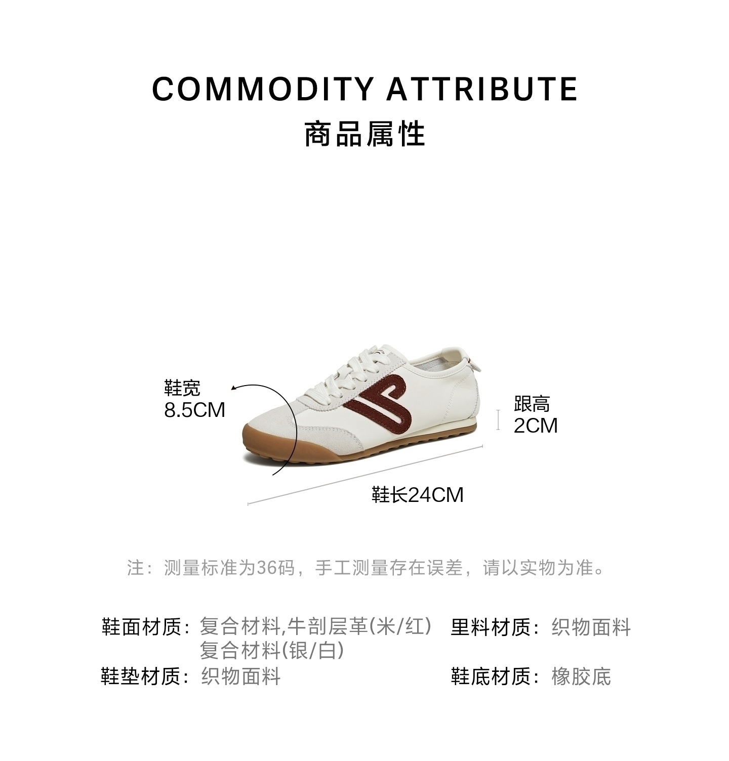| 鞋跟形状:平跟 | 参考鞋长(女):24CM | 流行元素:拼色 | 参考鞋宽(女):8.5CM | 风格:休闲 |