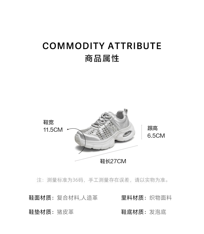 | 鞋跟形状:厚底 | 参考鞋长(女):27CM | 流行元素:拼色 | 参考鞋宽(女):11.5CM | 风格:休闲 |