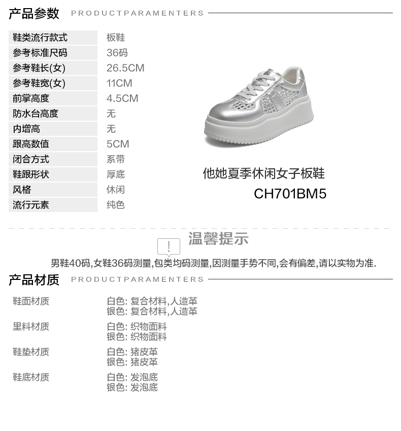 | 鞋跟形状:厚底 | 参考鞋长(女):26.5CM | 流行元素:纯色 | 参考鞋宽(女):11CM | 风格:休闲 |