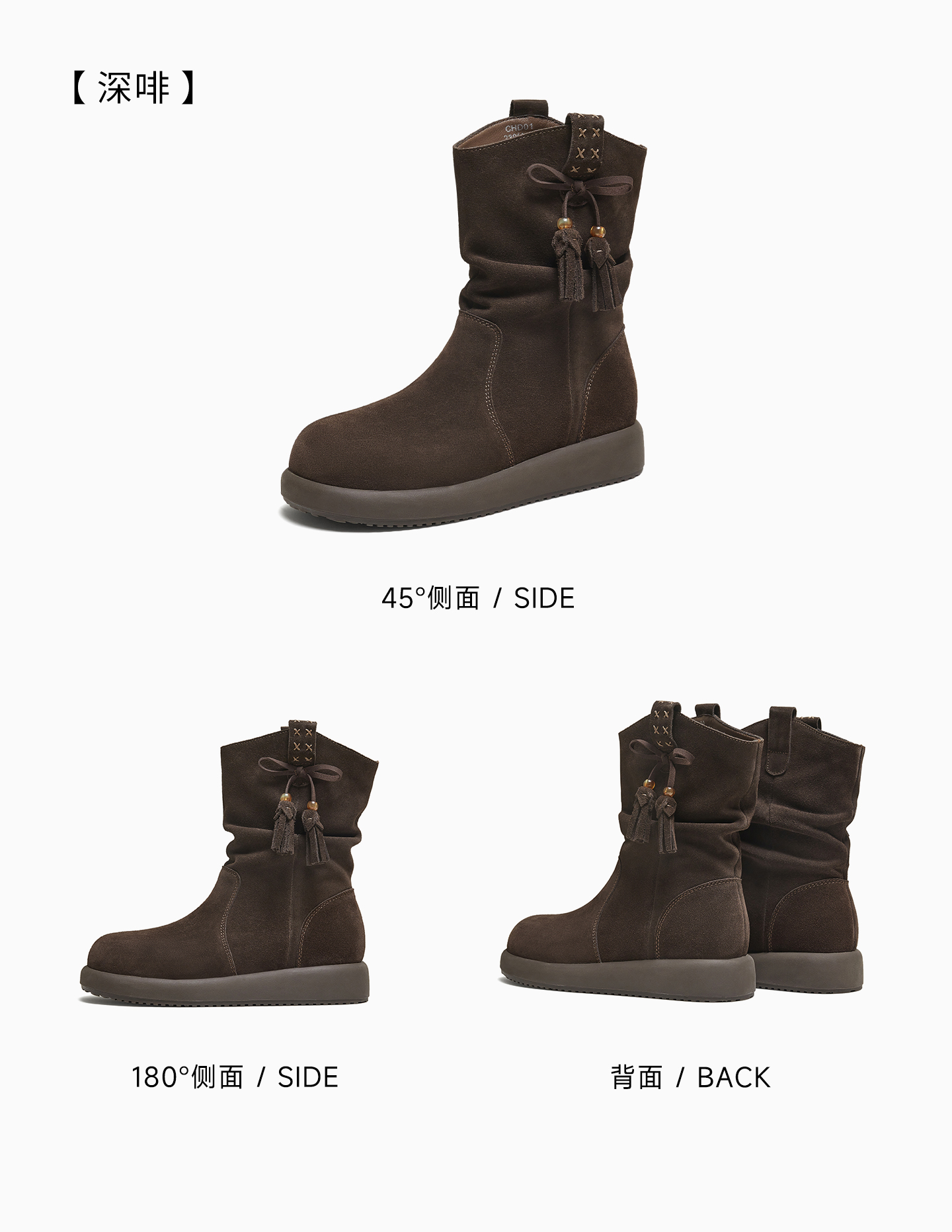 | 款式季节:冬季 | 前掌高度:3CM | 皮质特征:软面皮 | 防水台高度:无 |