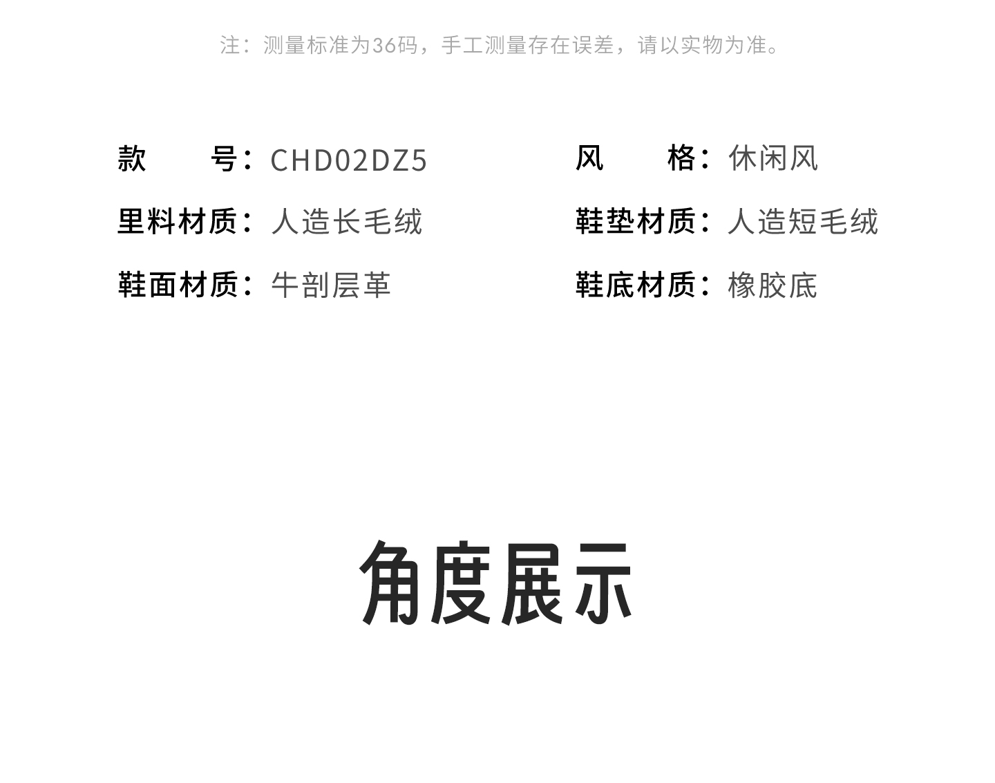 | 款式季节:冬季 | 前掌高度:3CM | 皮质特征:软面皮 | 防水台高度:无 |