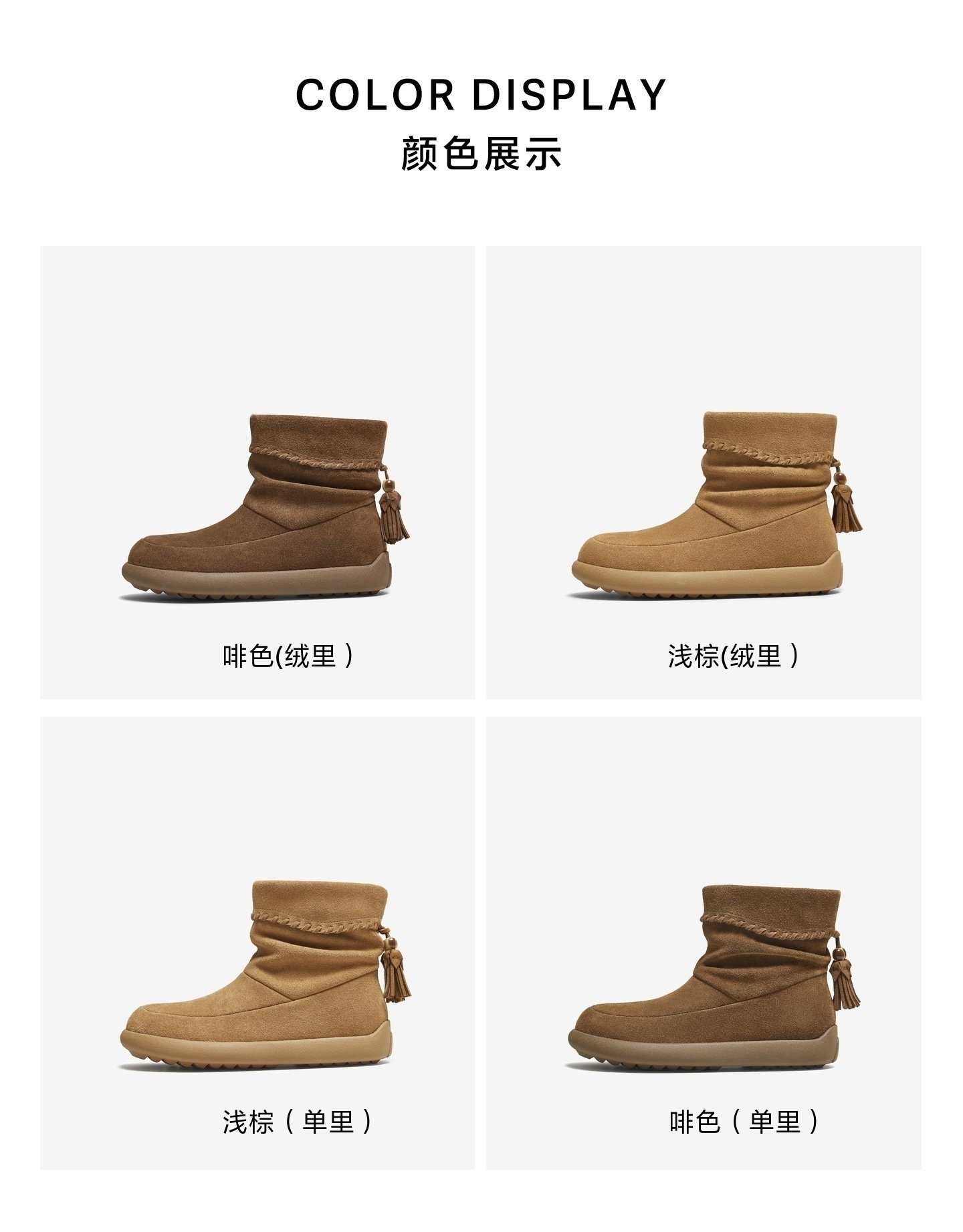 | 性别:女子 | 靴筒筒面材质:牛剖层革 | 里料材质:人造短毛绒 | 制鞋工艺:胶贴皮鞋 | 鞋垫材质:人造短毛绒 |