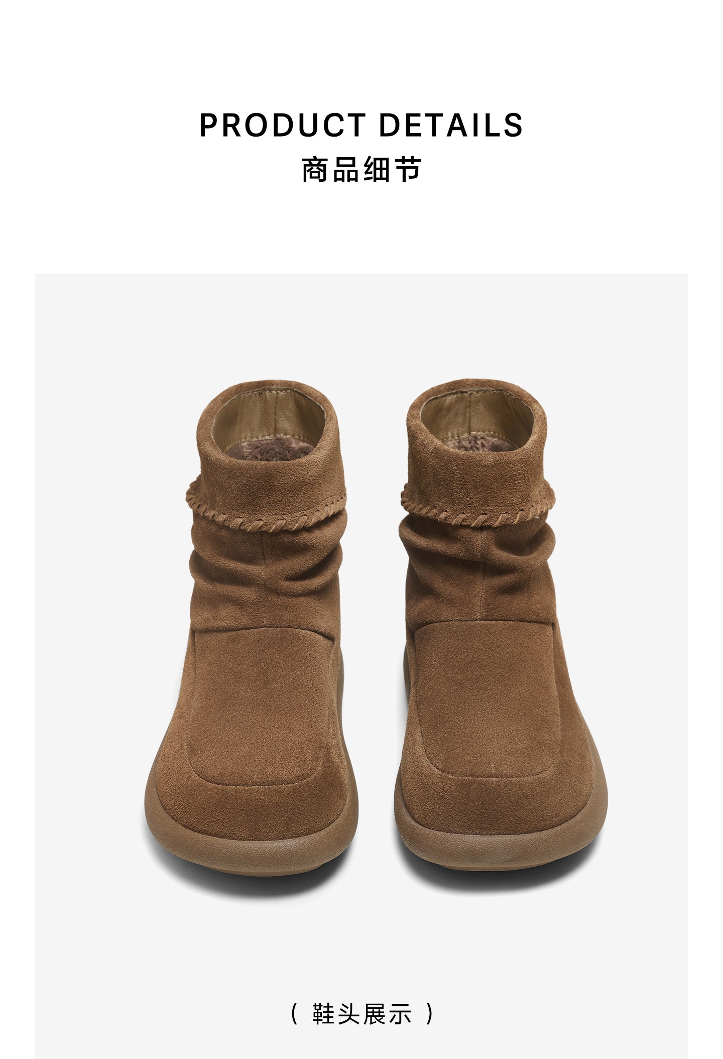 | 鞋底材质:橡胶底 | 靴筒内里材质:人造短毛绒 | 内增高:无 | 鞋面材质:牛剖层革 | 闭合方式:套脚 |