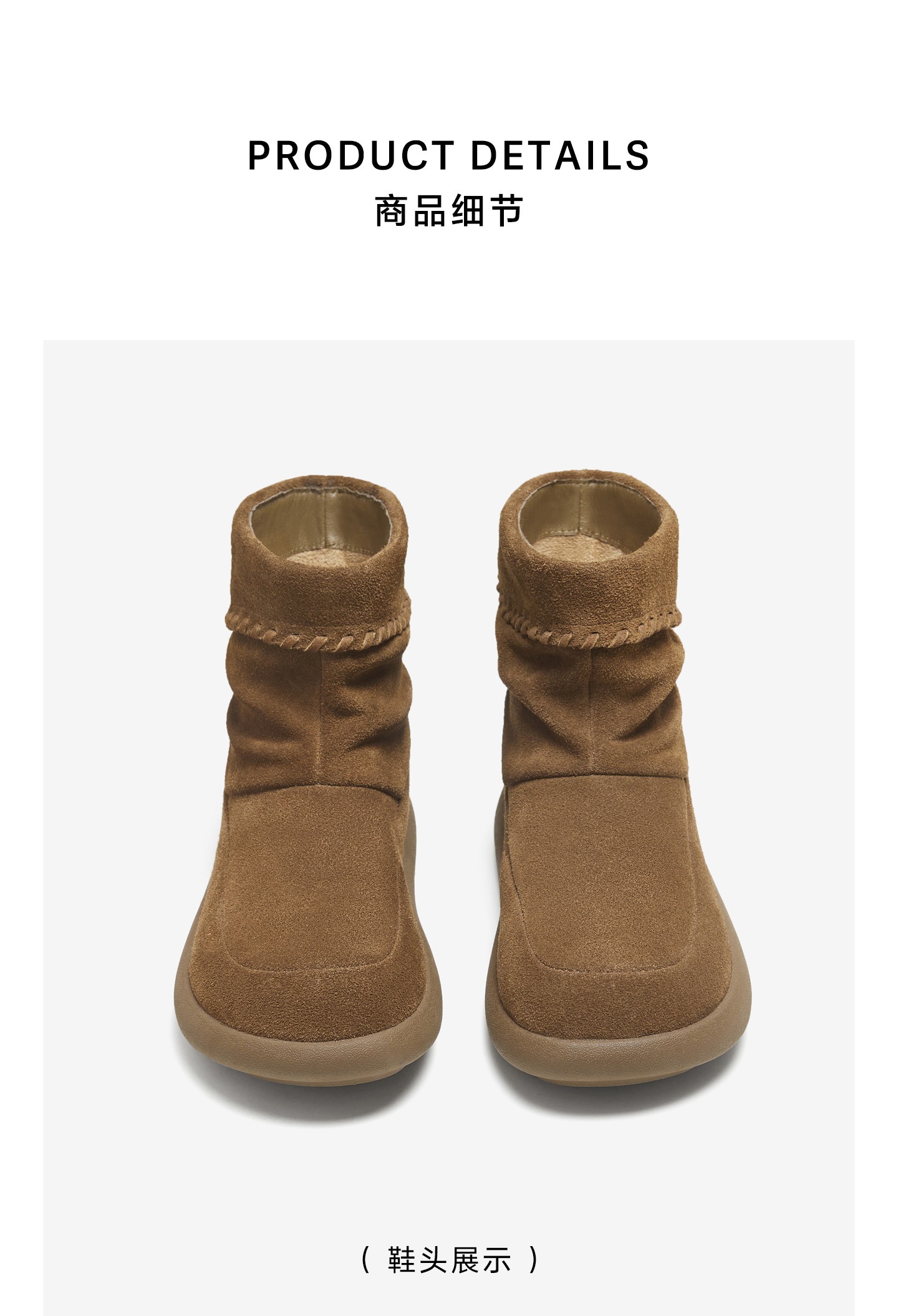 | 帮面材质:牛剖层革 | 配跟:无 | 靴筒口围:28CM | 上市时间:2025年冬季 | 鞋类流行款式:时装靴 |