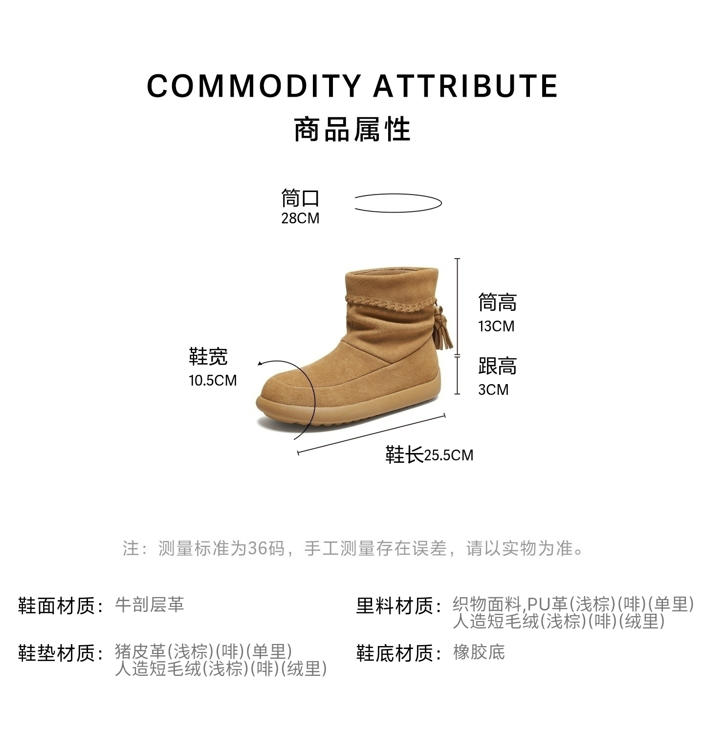 | 帮面材质:牛剖层革 | 配跟:无 | 靴筒口围:28CM | 上市时间:2025年冬季 | 鞋类流行款式:时装靴 |
