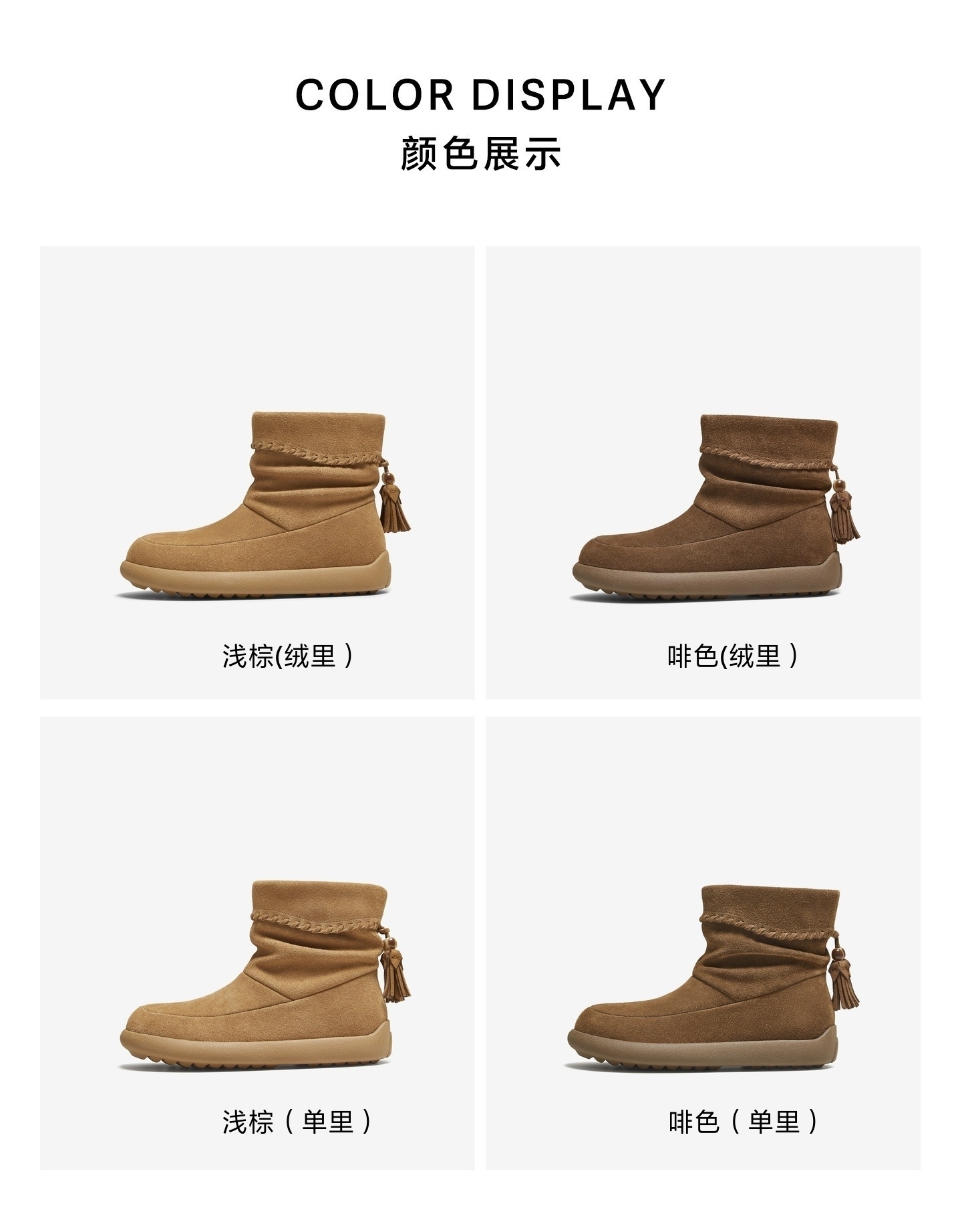 | 性别:女子 | 靴筒筒面材质:牛剖层革 | 里料材质:人造短毛绒 | 制鞋工艺:胶贴皮鞋 | 鞋垫材质:人造短毛绒 |