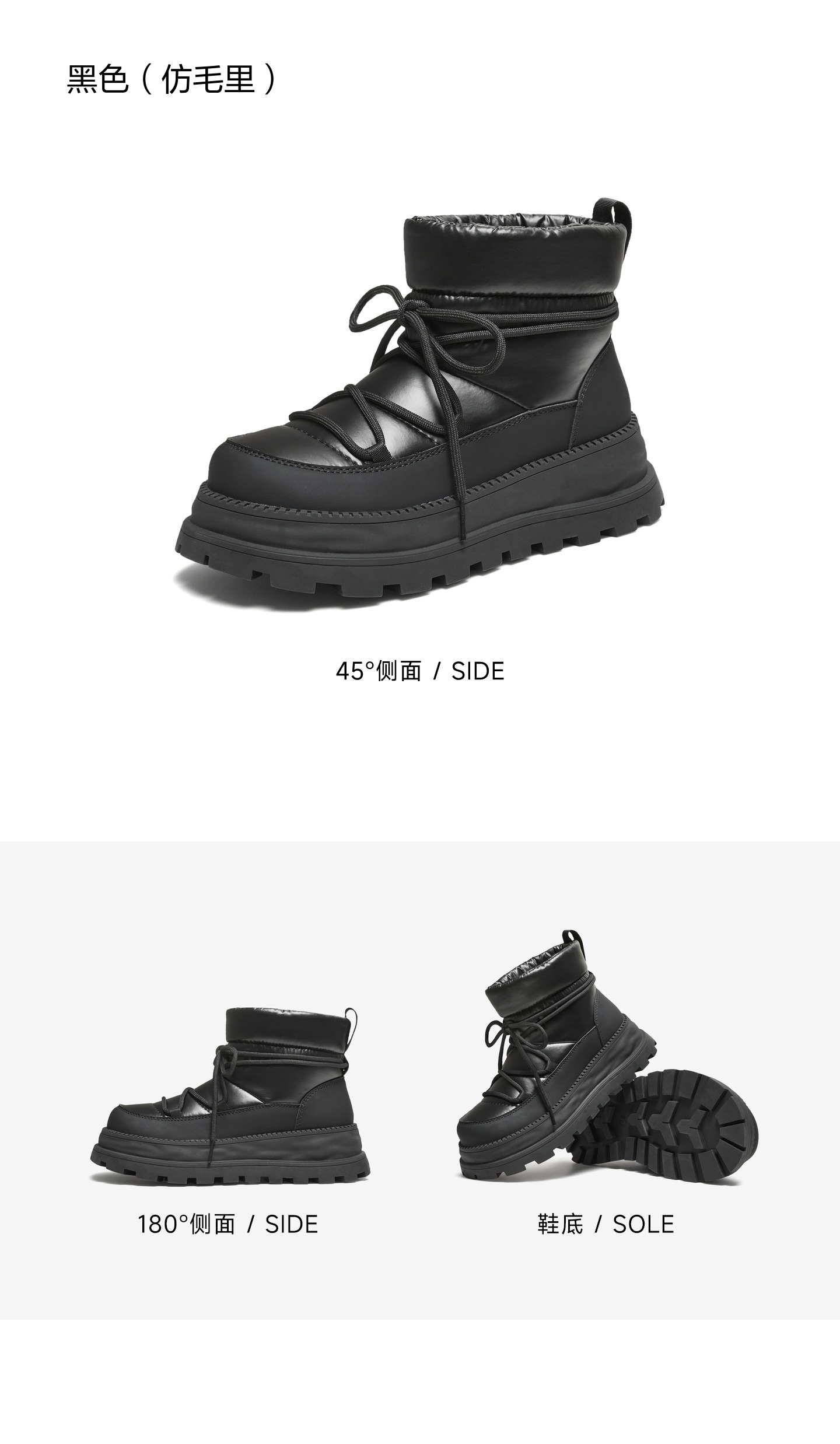 | 款式季节:冬季 | 前掌高度:3CM | 皮质特征:软面皮 | 防水台高度:无 |
