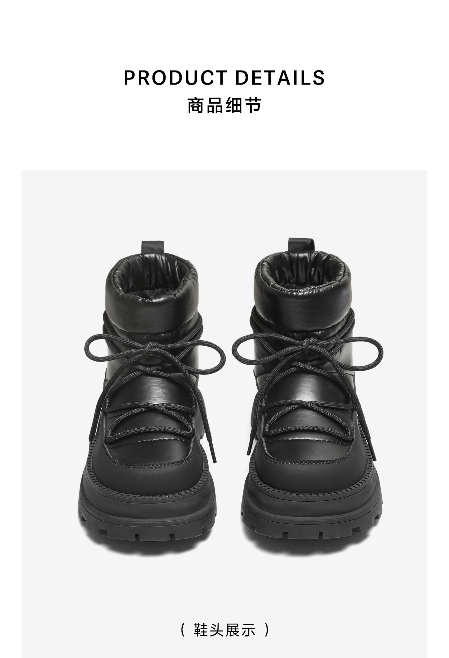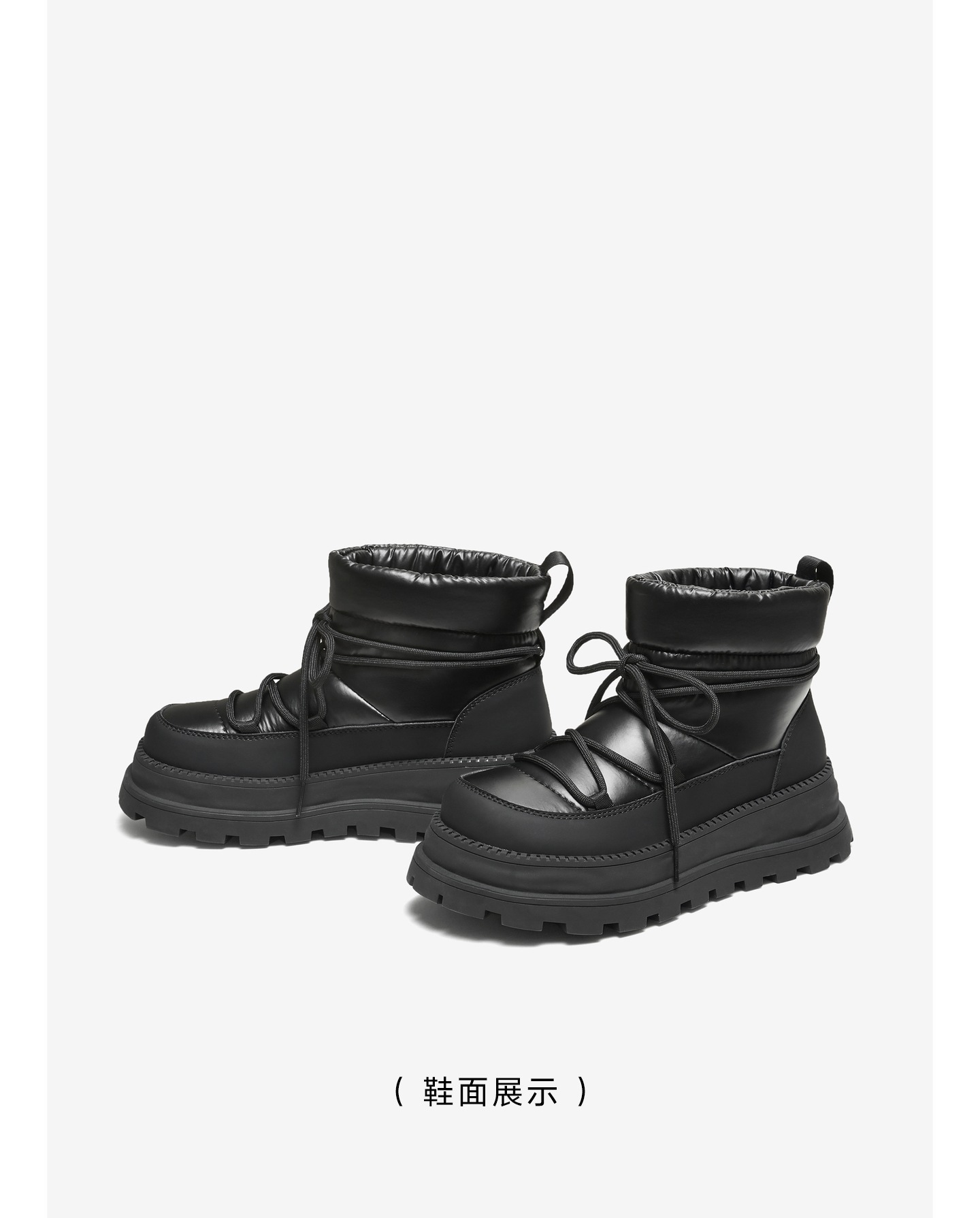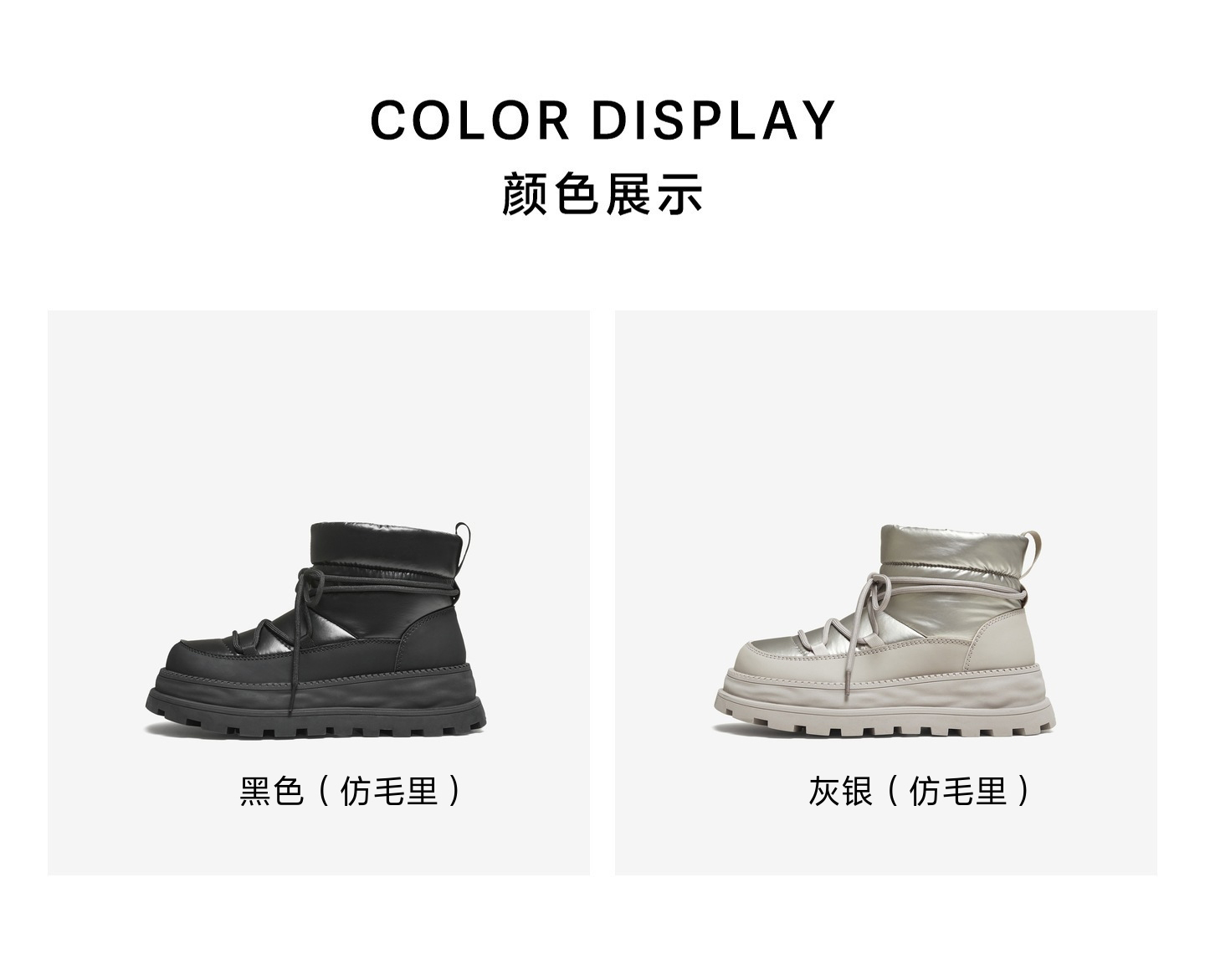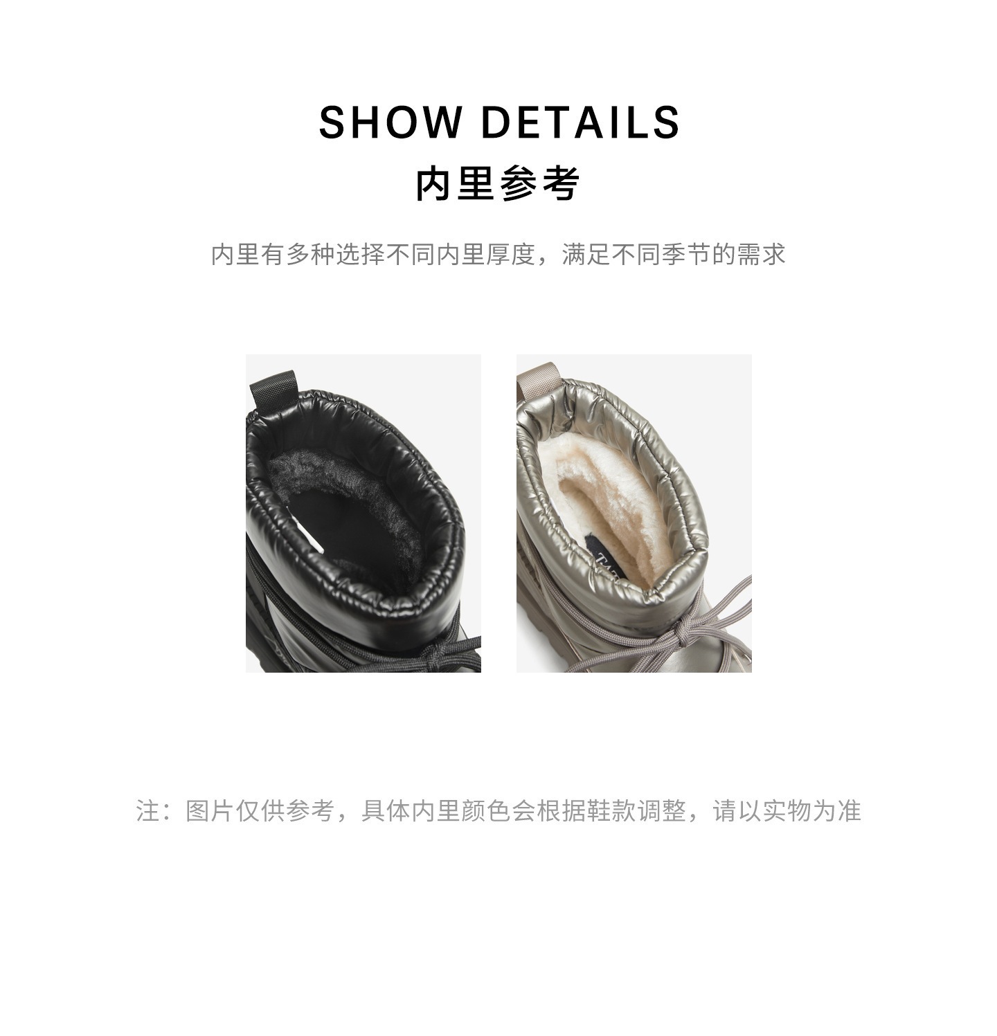 | 帮面材质:复合材料织物 | 配跟:无 | 靴筒口围:30CM | 上市时间:2025年冬季 | 鞋类流行款式:雪地靴 |