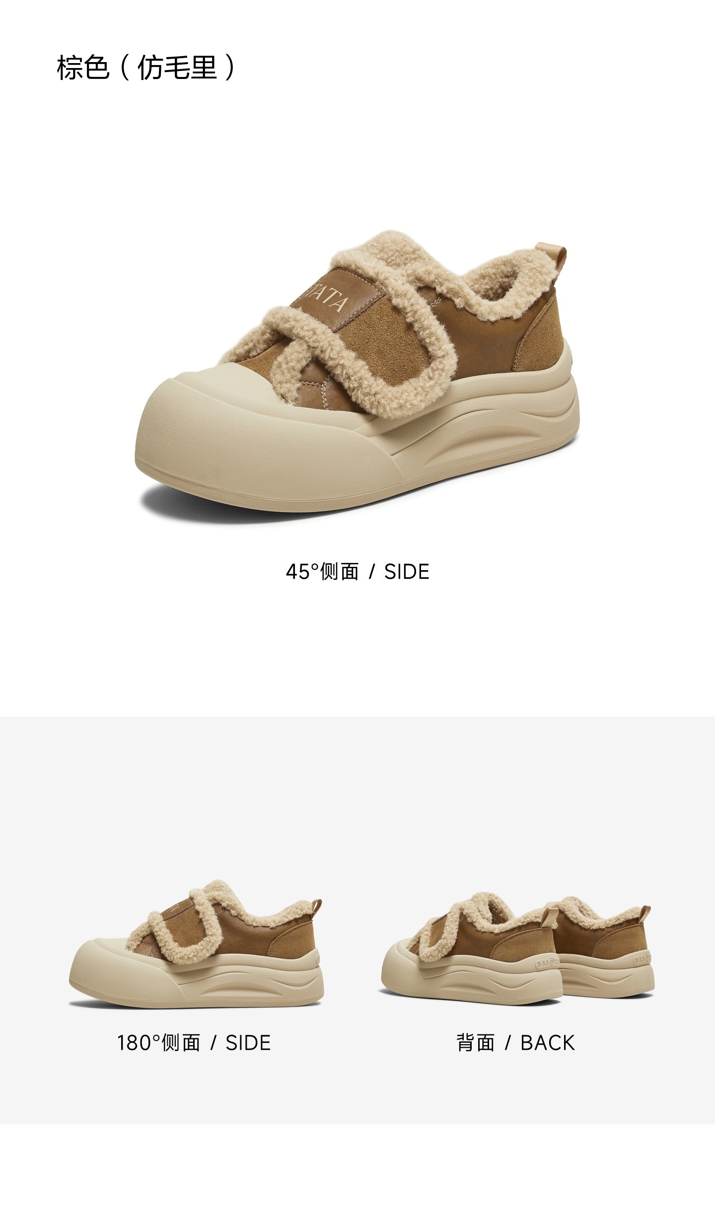 | 制鞋工艺:胶贴皮鞋 | 鞋垫材质:人造短毛绒 | 款式季节:冬季 | 前掌高度:3CM | 皮质特征:软面皮 |