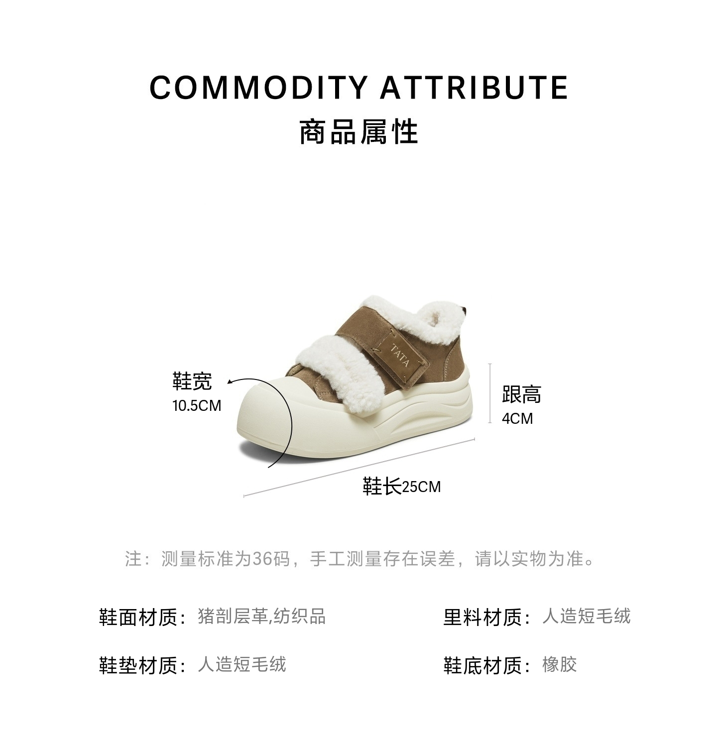 | 色系:卡其 | 跟高数值:4CM | 适用人群:女子 | 性别:女子 | 里料材质:人造短毛绒 |
