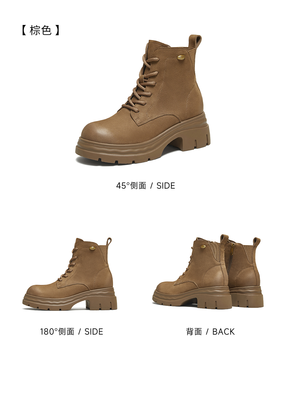 | 鞋底材质:橡胶底 | 靴筒内里材质:猪皮革织物面料 | 内增高:无 | 鞋面材质:牛皮革 | 闭合方式:系带 |