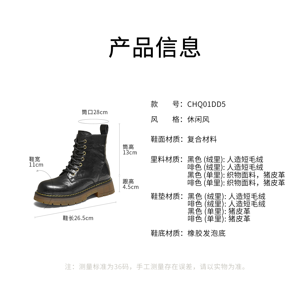 | 帮面材质:复合材料 | 配跟:有 | 靴筒口围:28CM | 上市时间:2025年冬季 | 鞋类流行款式:马丁靴 |