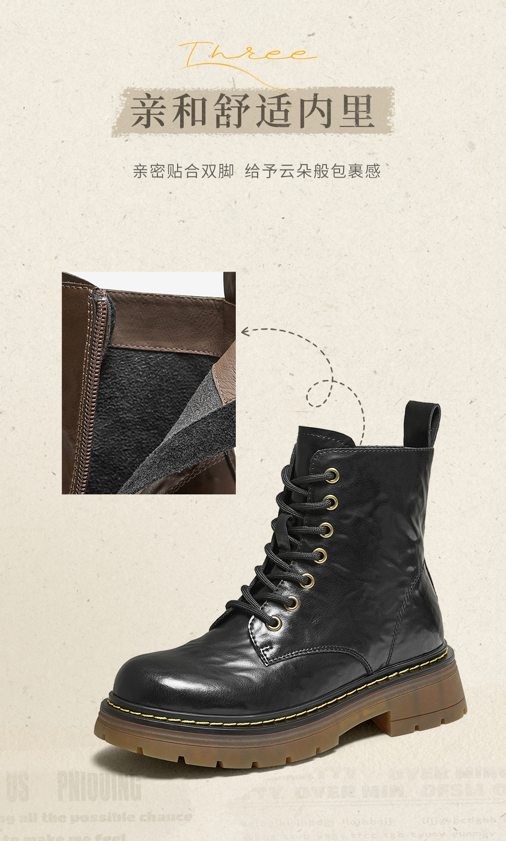 | 帮面材质:复合材料 | 配跟:有 | 靴筒口围:28CM | 上市时间:2025年冬季 | 鞋类流行款式:马丁靴 |