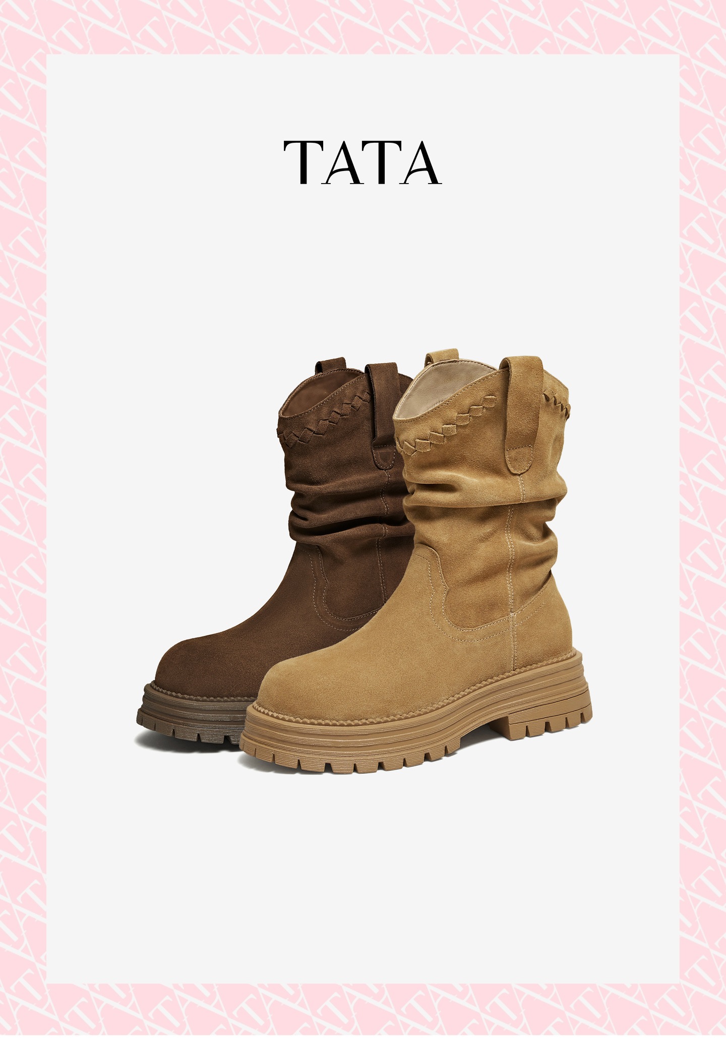 他她(Tata),品牌成立于2003年,致力为都市年轻人群提供时尚潮流、具有性价比的鞋履产品。十五年来“踏踏”的着地声,寓意都市白领元气满满的生活,如时尚“伴履”的TATA一直陪伴左右、伴随走出TATA的时尚步伐。2017年TATA美丽蜕变,TATA STAR元素的加入预示品牌将成为闪亮、前端的时尚鞋履品牌。