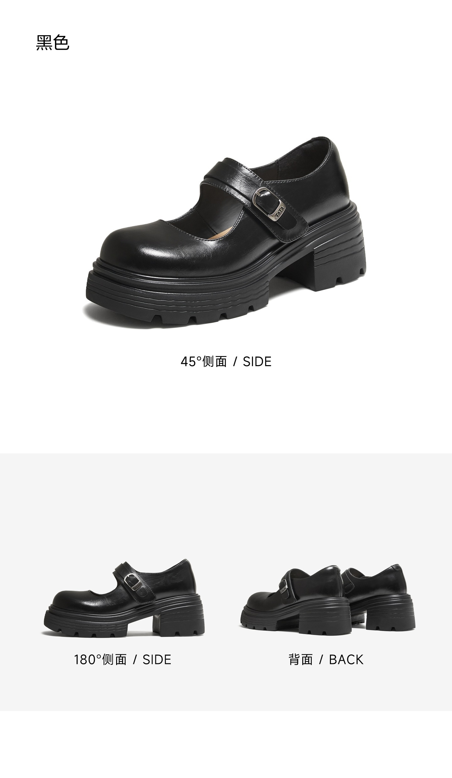 | 鞋头款式:圆头 | 鞋底材质:PU | 鞋面图案:纯色 | 内增高:无 | 鞋跟形状:粗跟 |