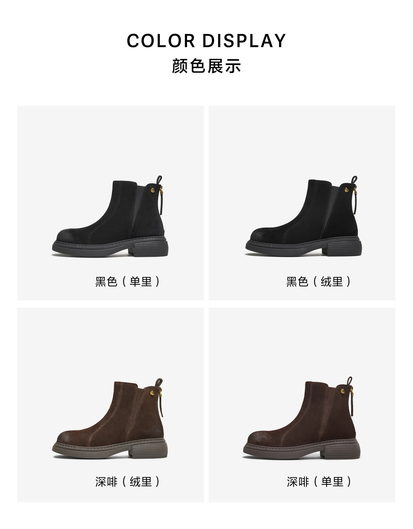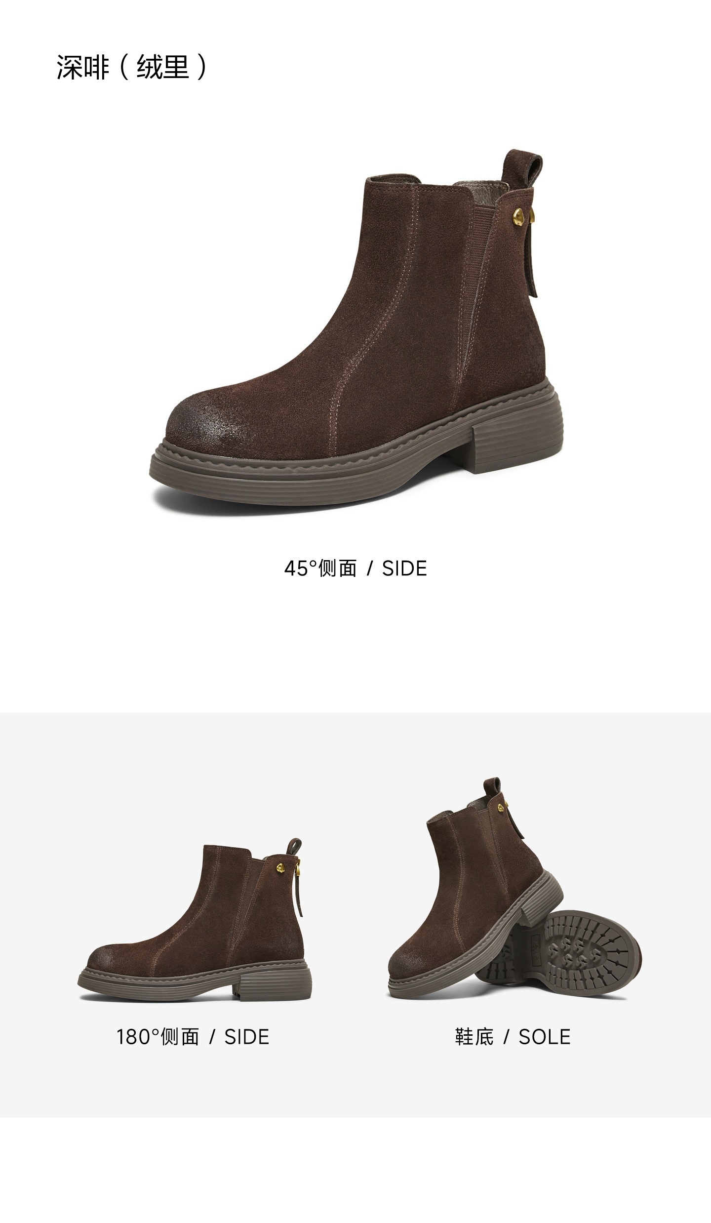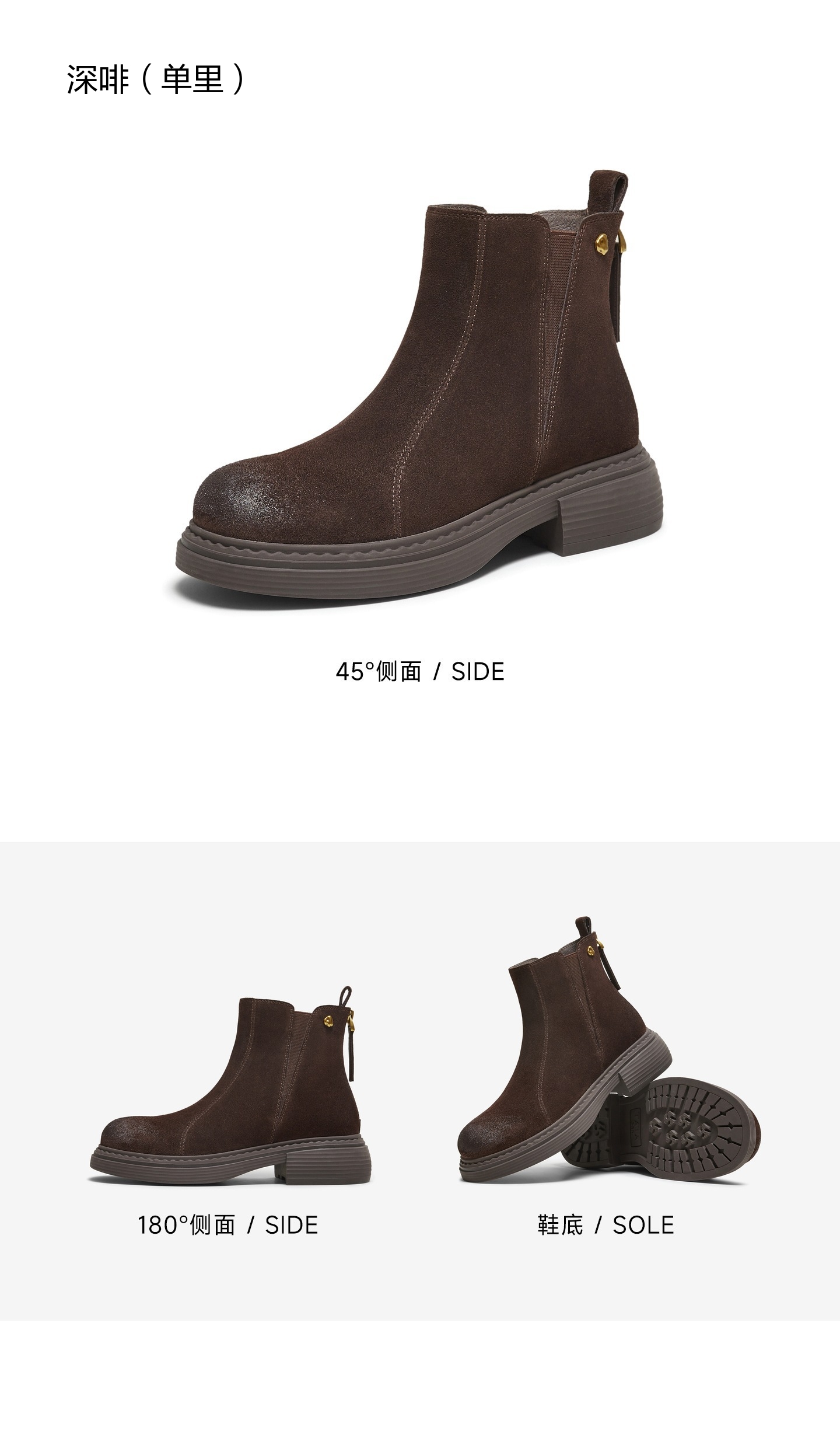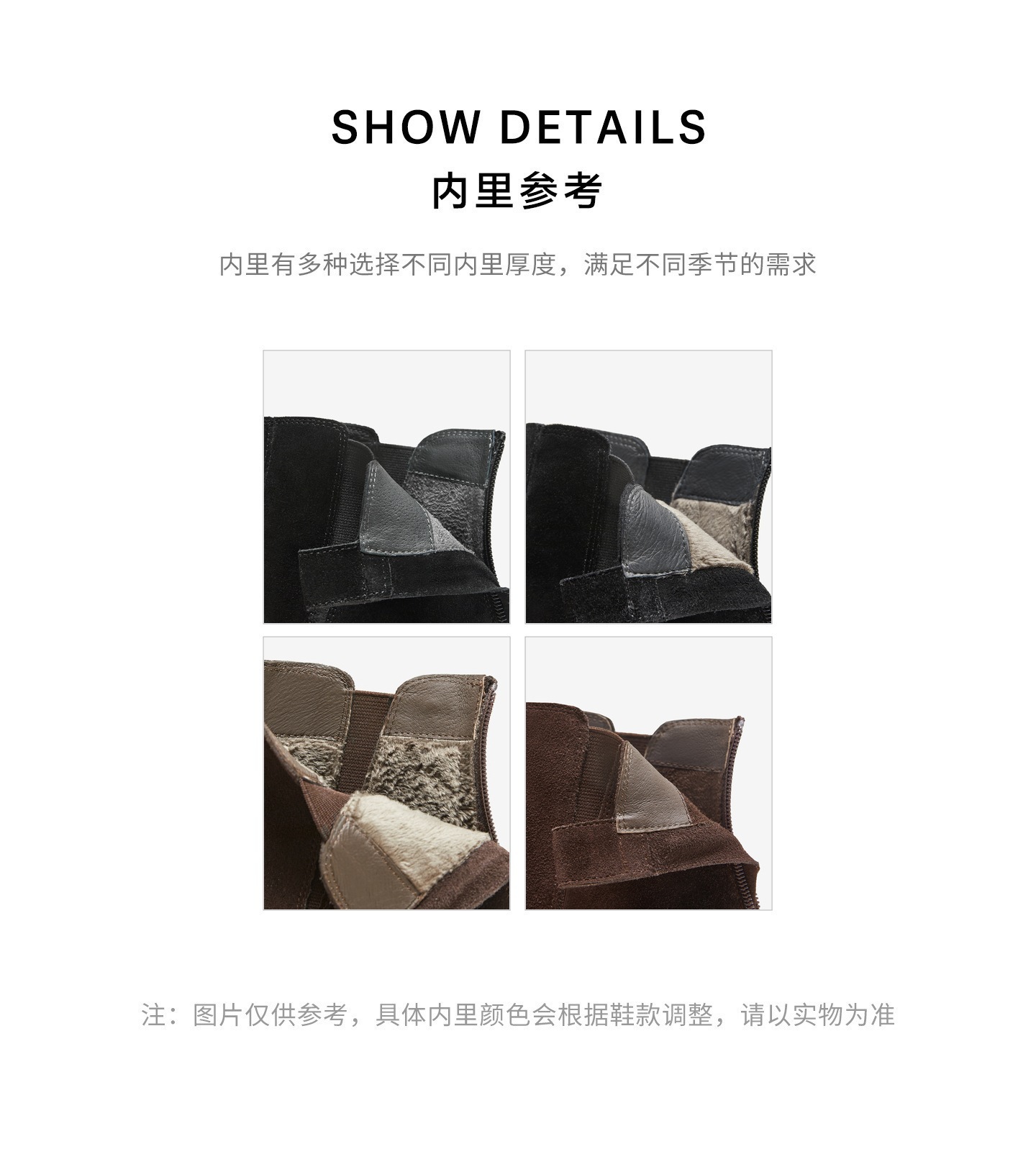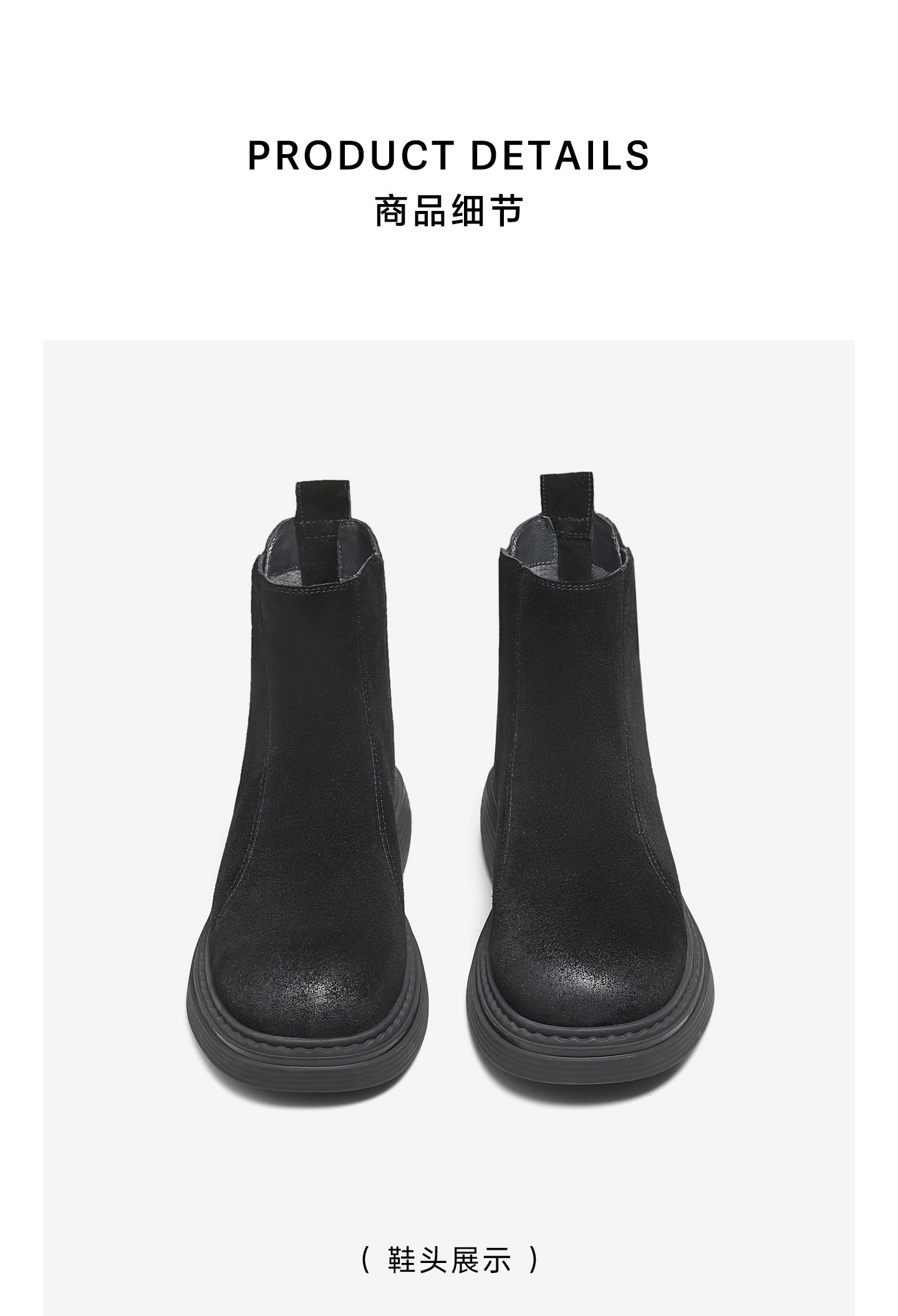 | 帮面材质:牛剖层革 | 配跟:有 | 靴筒口围:27CM | 上市时间:2025年冬季 | 鞋类流行款式:切尔西靴 |