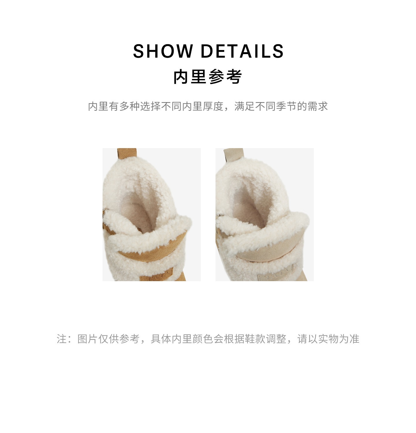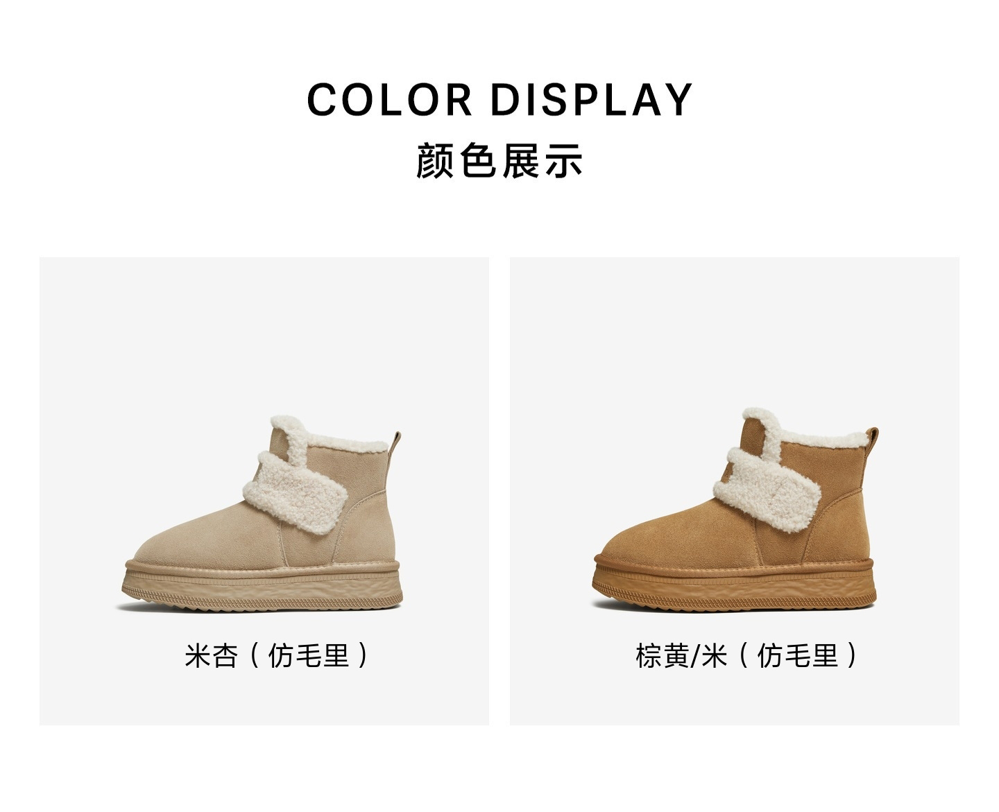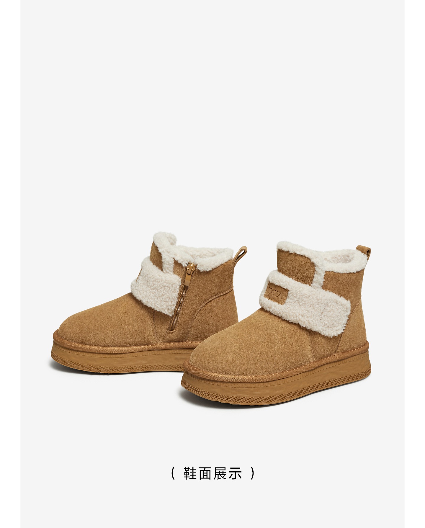 | 帮面材质:织物牛剖层革 | 配跟:无 | 靴筒口围:28CM | 上市时间:2025年冬季 | 鞋类流行款式:雪地靴 |