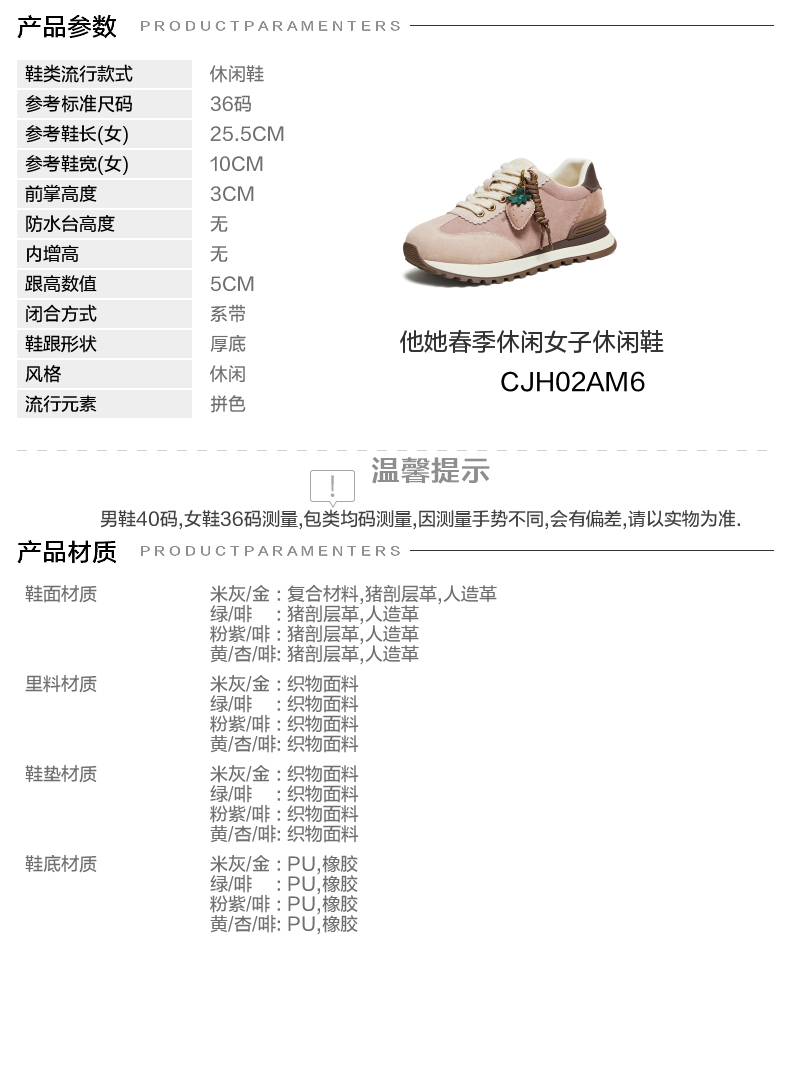| 鞋跟形状:厚底 | 参考鞋长(女):25.5CM | 流行元素:拼色 | 参考鞋宽(女):10CM | 风格:休闲 |