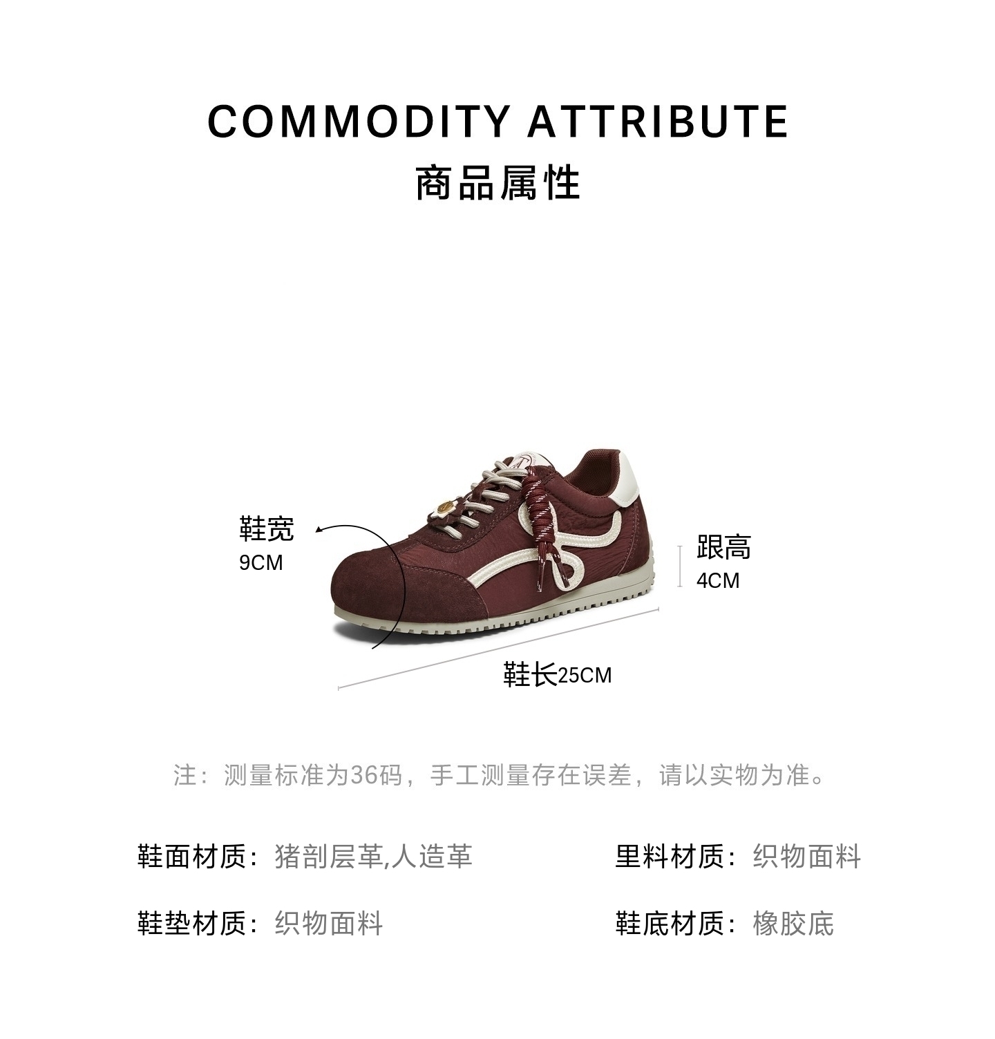 | 鞋跟形状:内增高 | 参考鞋长(女):25CM | 流行元素:拼色 | 参考鞋宽(女):9CM | 风格:休闲 |