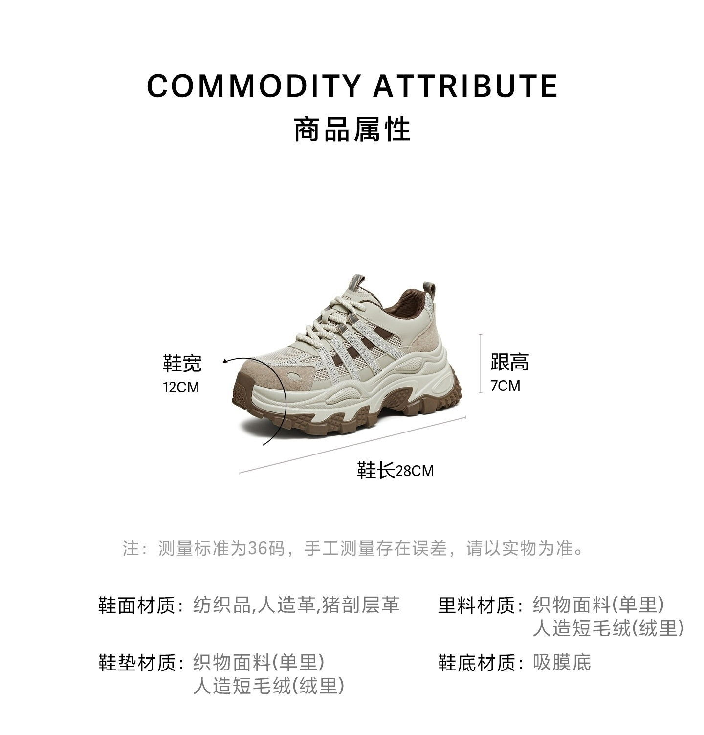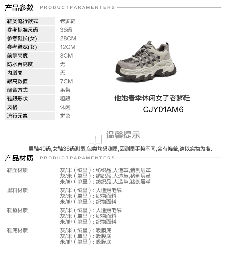 | 配跟:有 | 上市时间:2026年春季 | 鞋类流行款式:老爹鞋 | 鞋头款式:圆头 | 鞋面图案:拼色 |