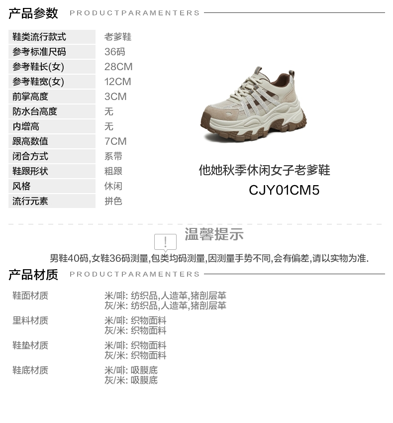 | 配跟:有 | 上市时间:2025年秋季 | 鞋类流行款式:老爹鞋 | 鞋头款式:圆头 | 鞋面图案:拼色 |