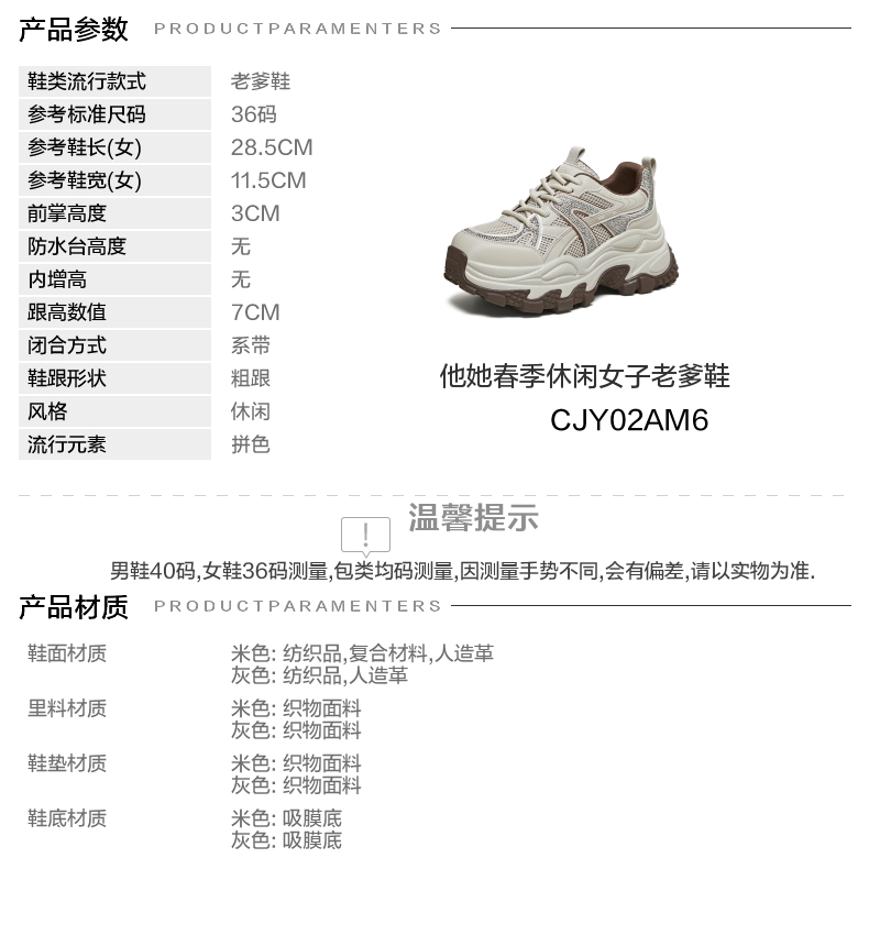 | 配跟:有 | 上市时间:2026年春季 | 鞋类流行款式:老爹鞋 | 鞋头款式:圆头 | 鞋面图案:拼色 |