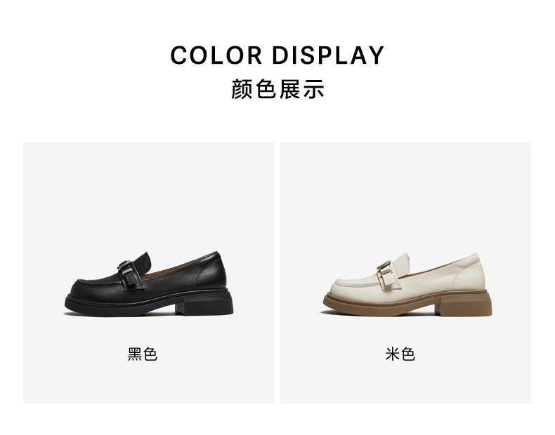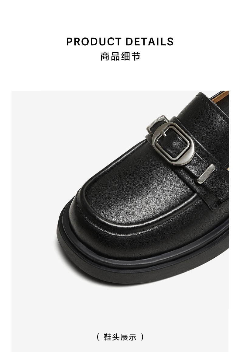 配跟:有 上市时间:2025年秋季 鞋类流行款式:乐福鞋 鞋头款式:圆头 鞋面图案:纯色