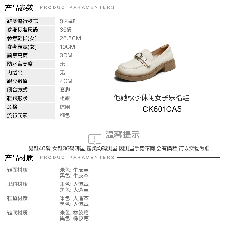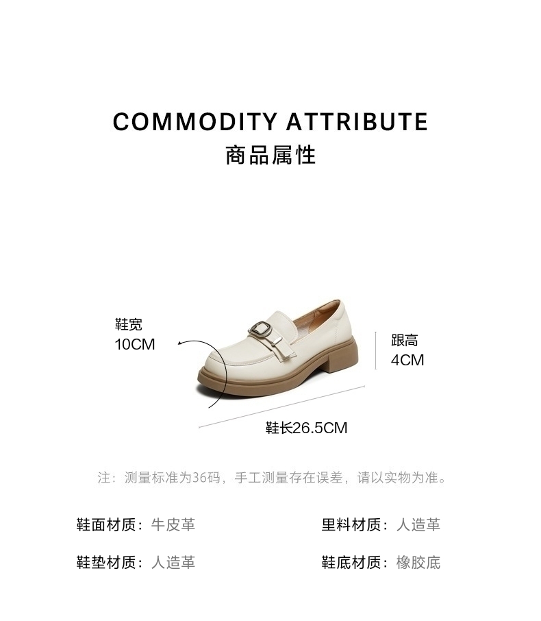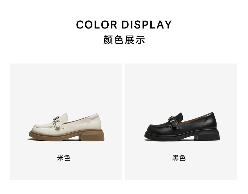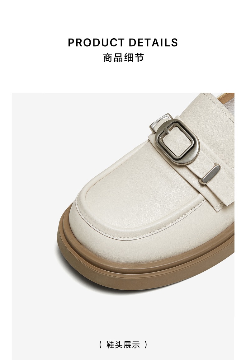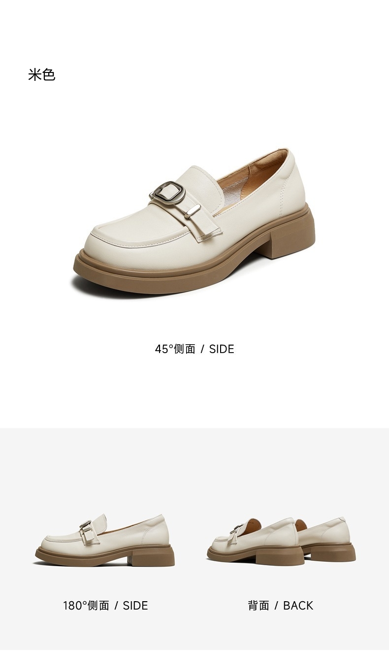| 配跟:有 | 上市时间:2025年秋季 | 鞋类流行款式:乐福鞋 | 鞋头款式:圆头 | 鞋面图案:纯色 |