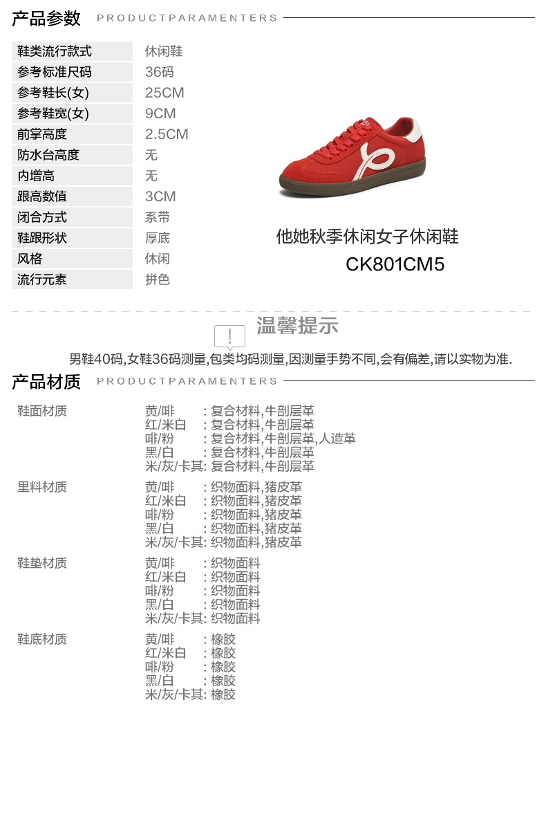 | 鞋跟形状:厚底 | 参考鞋长(女):25CM | 流行元素:拼色 | 参考鞋宽(女):9CM | 风格:休闲 |