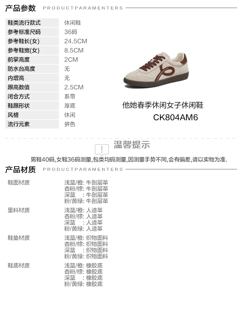 | 鞋跟形状:厚底 | 参考鞋长(女):24.5CM | 流行元素:拼色 | 参考鞋宽(女):8.5CM | 风格:休闲 |