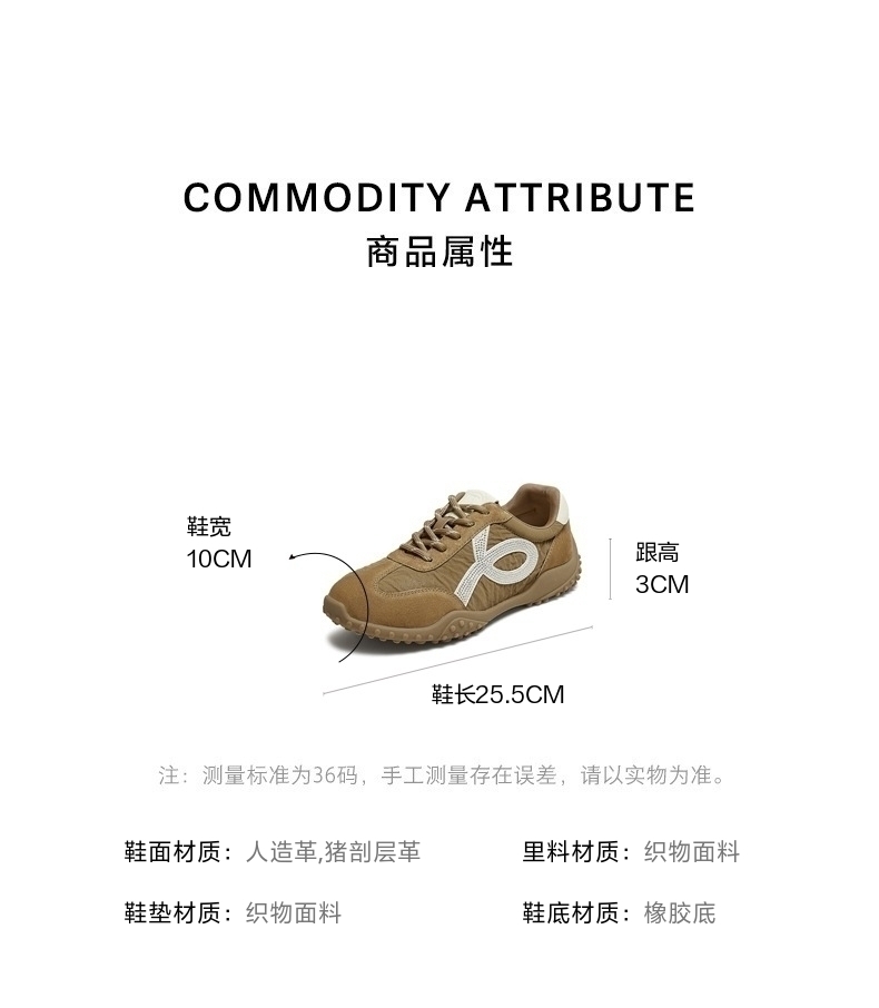 | 鞋帮:低帮 | 鞋底材质:橡胶底 | 内增高:无 | 鞋面材质:猪剖层革人造革 | 闭合方式:系带 |