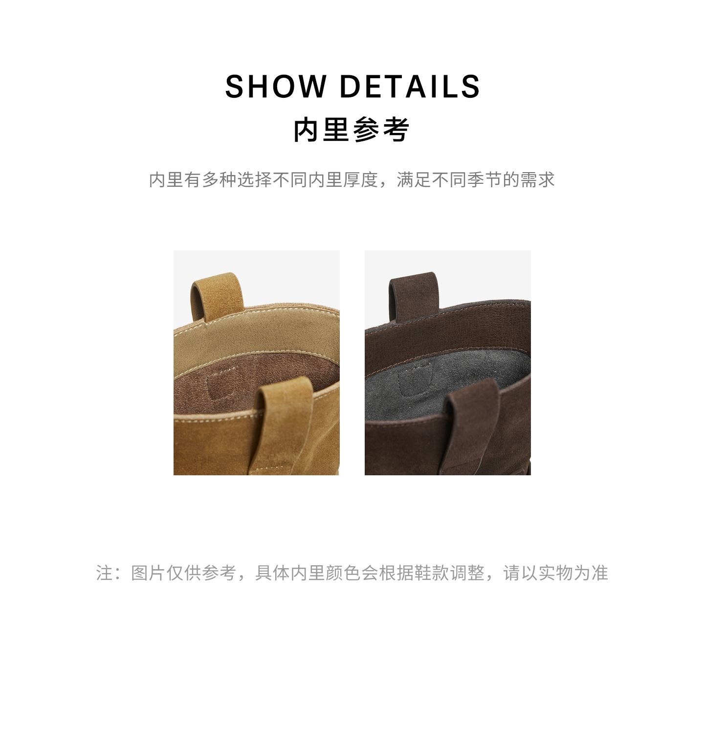 | 靴筒筒面材质:牛剖层革 | 里料材质:PU革织物面料 | 制鞋工艺:胶贴皮鞋 | 鞋垫材质:猪皮革 | 款式季节:冬季 |