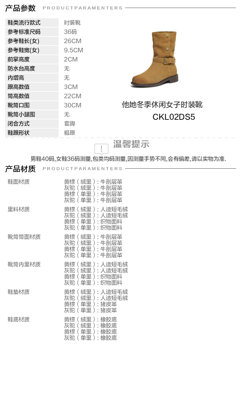 | 配跟:有 | 靴筒口围:30CM | 上市时间:2025年冬季 | 鞋类流行款式:时装靴 | 鞋头款式:圆头 |