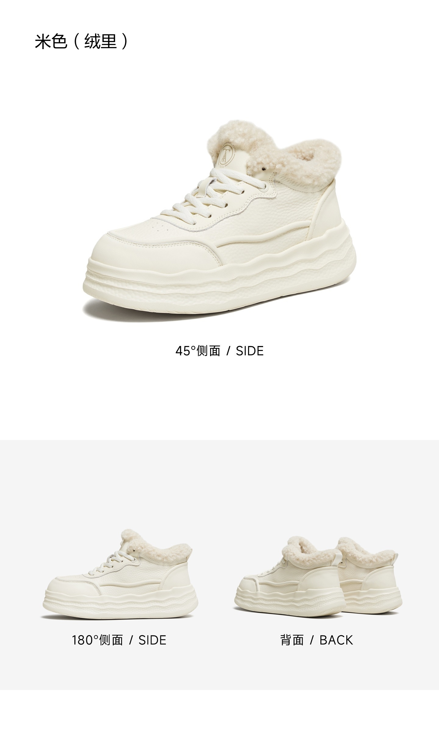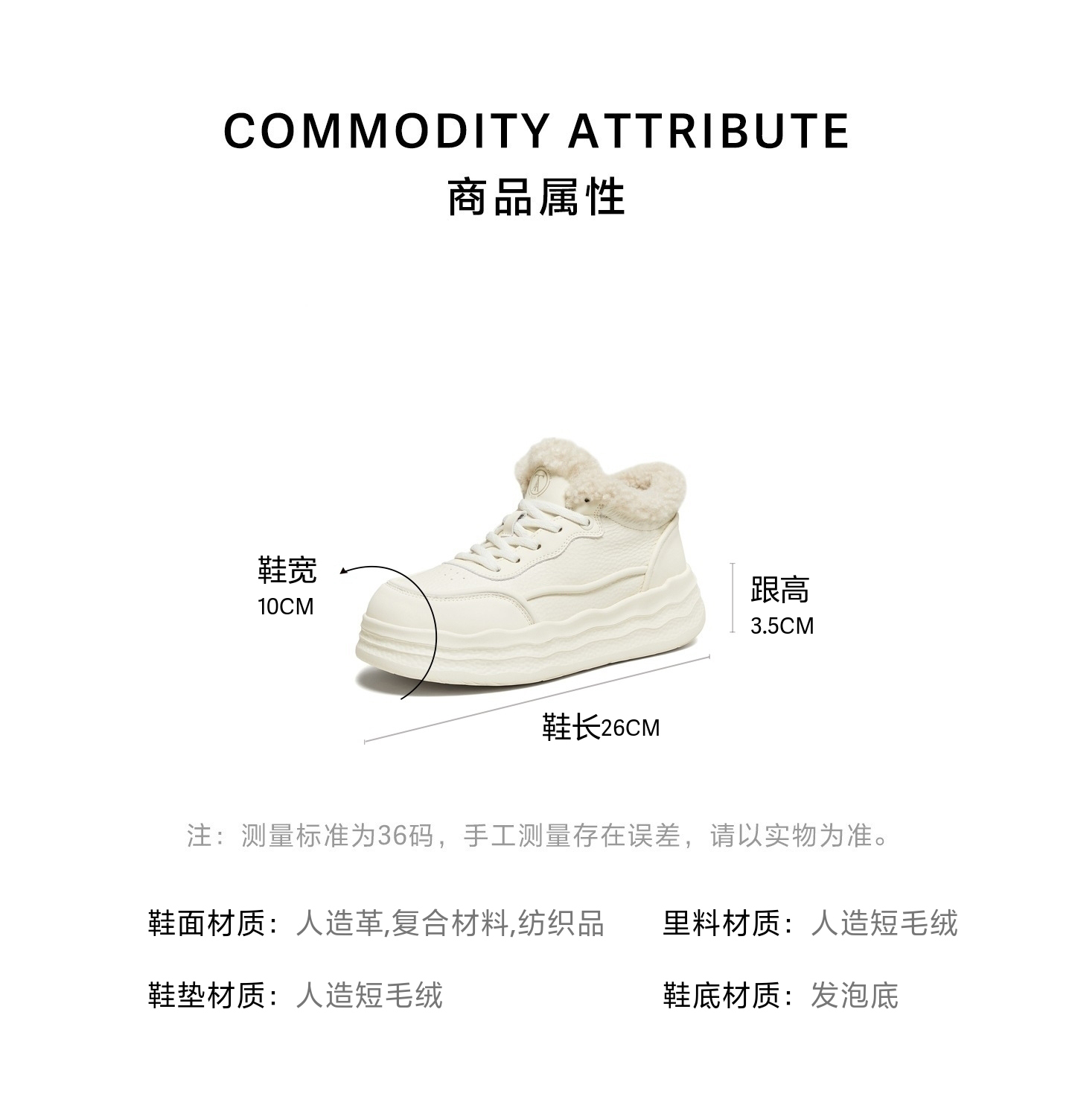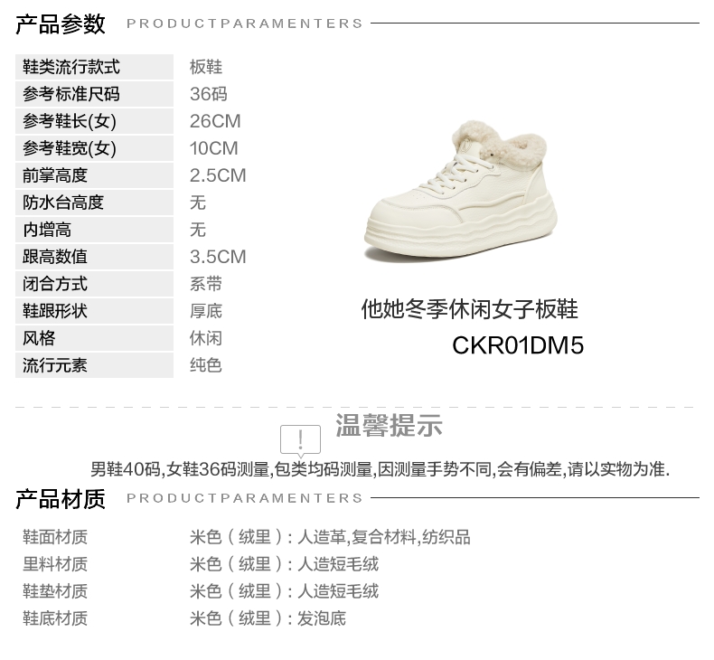 | 色系:米色 | 跟高数值:3.5CM | 适用人群:女子 | 性别:女子 | 里料材质:人造短毛绒 |