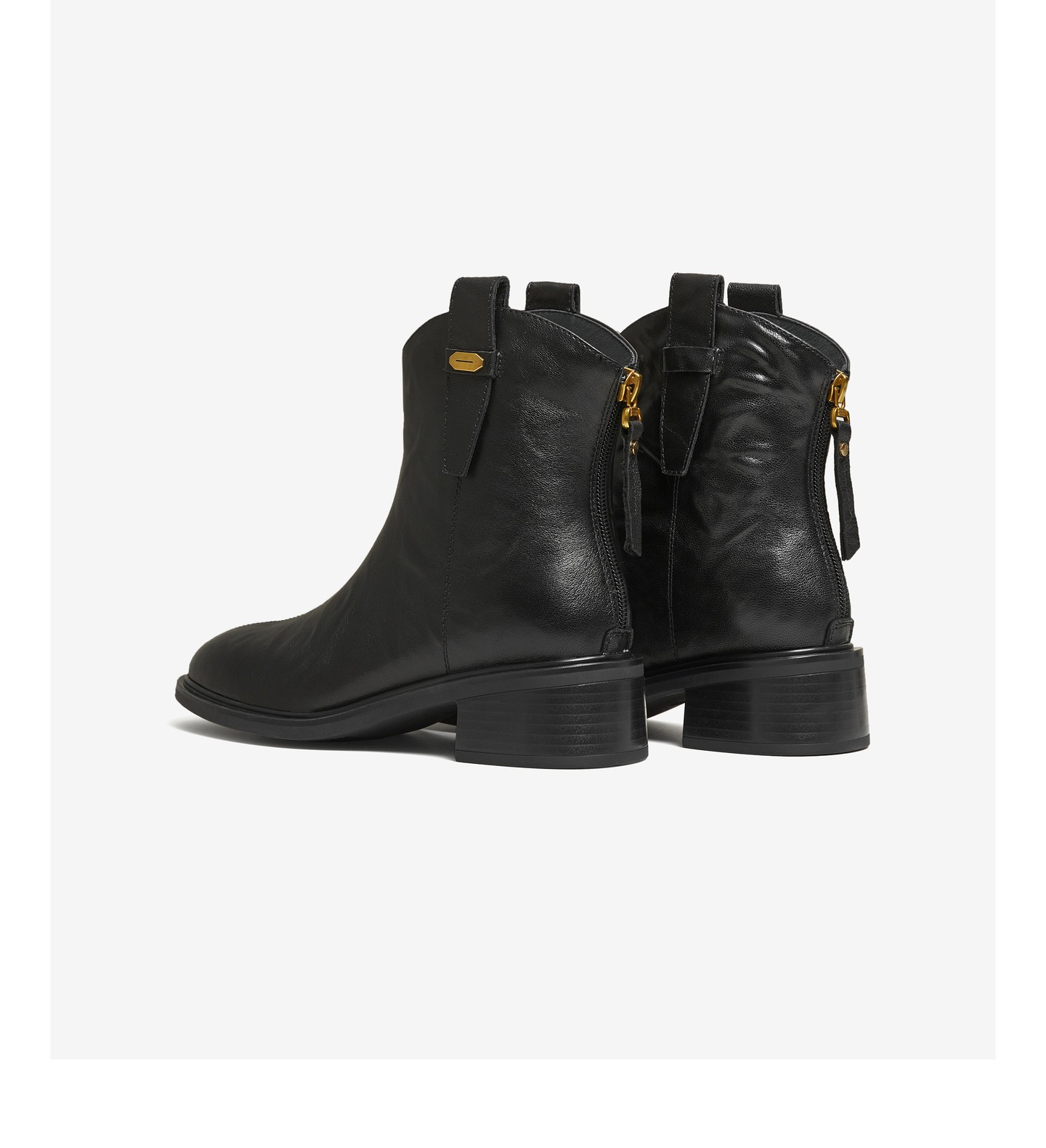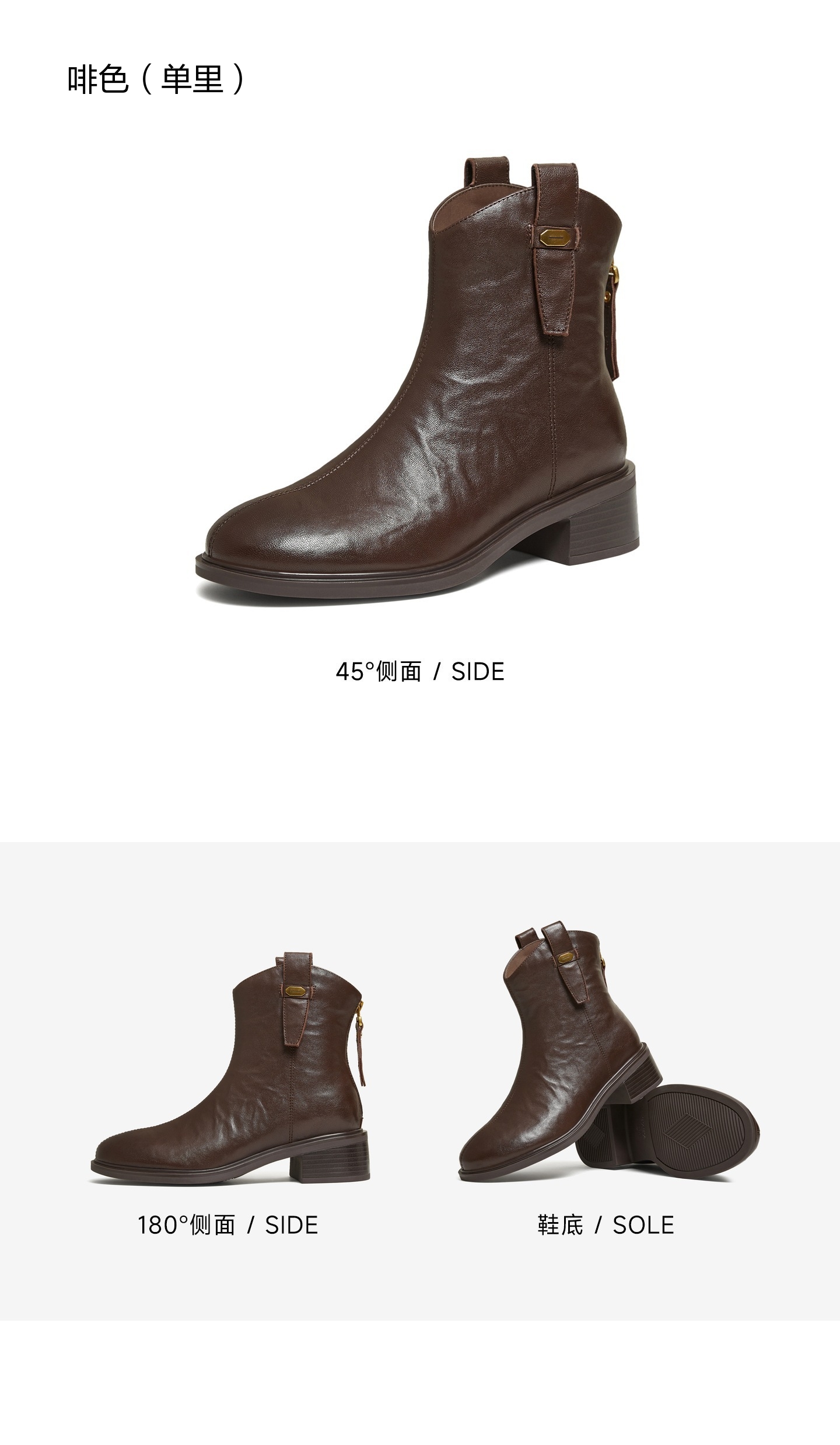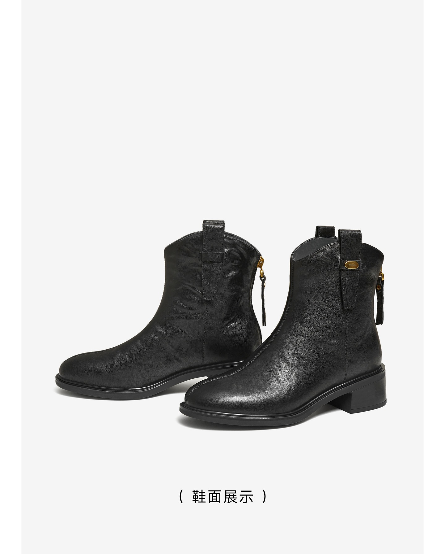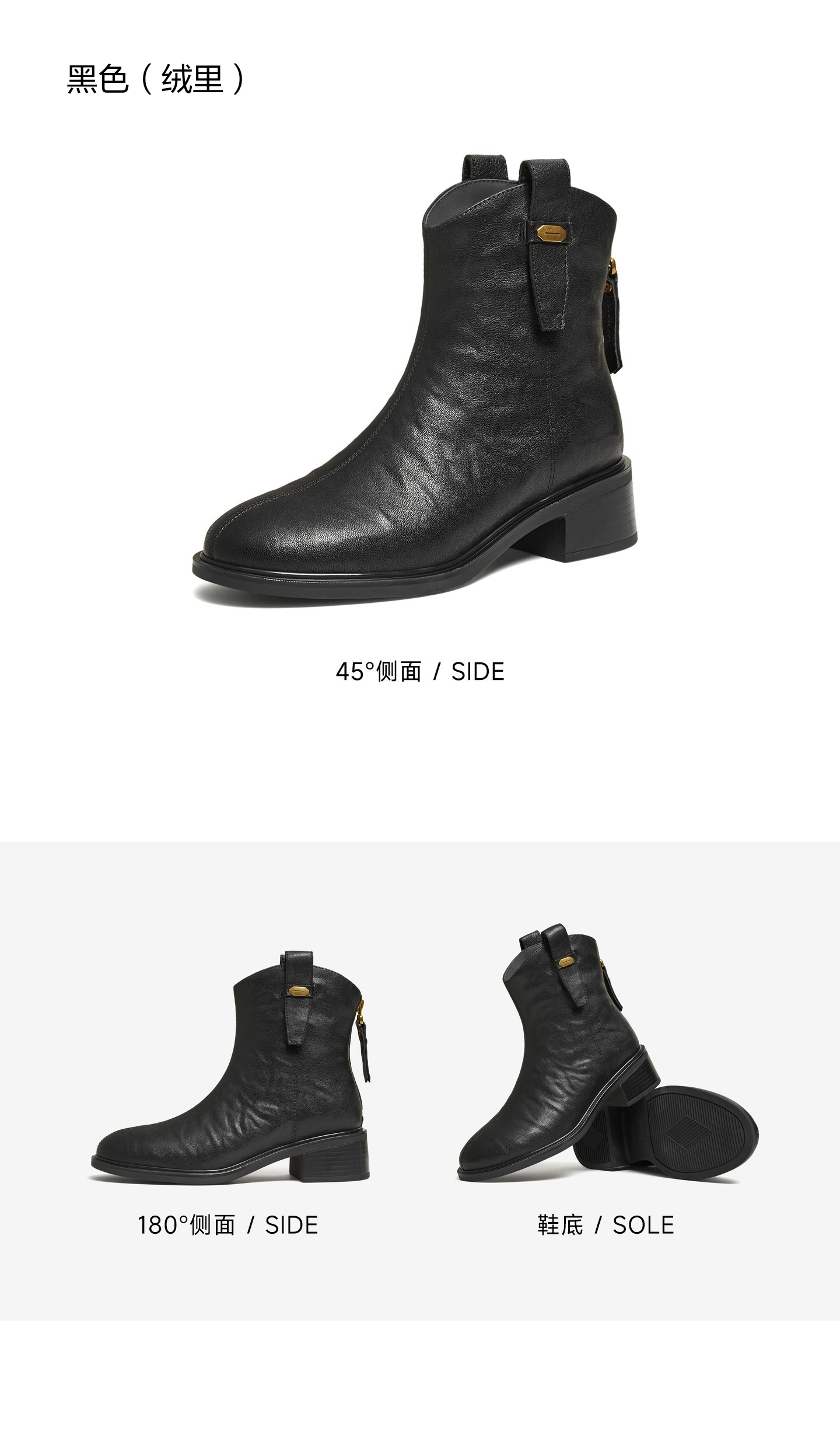 | 鞋底材质:橡胶底 | 靴筒内里材质:猪皮革织物面料 | 内增高:无 | 鞋面材质:羊皮革 | 闭合方式:后拉链 |