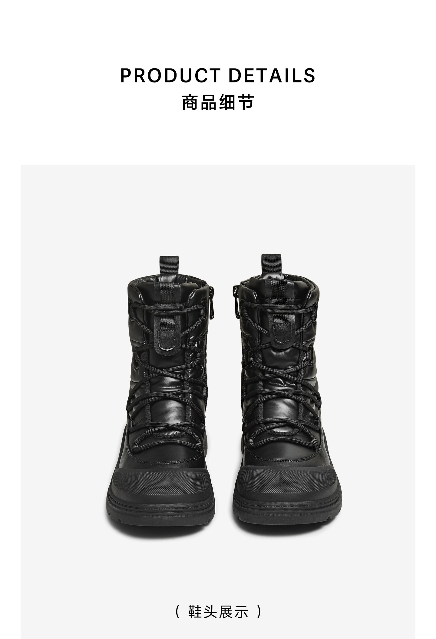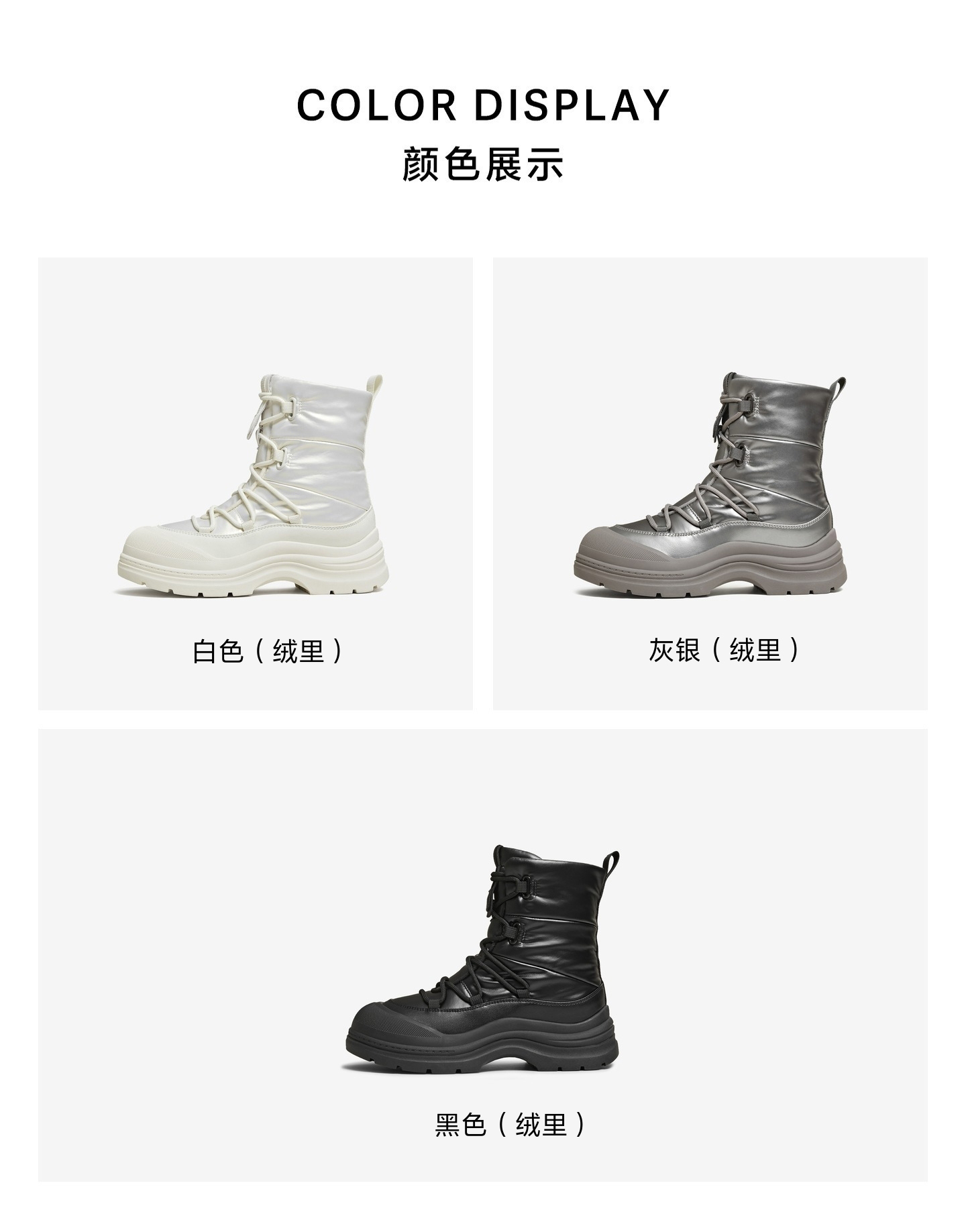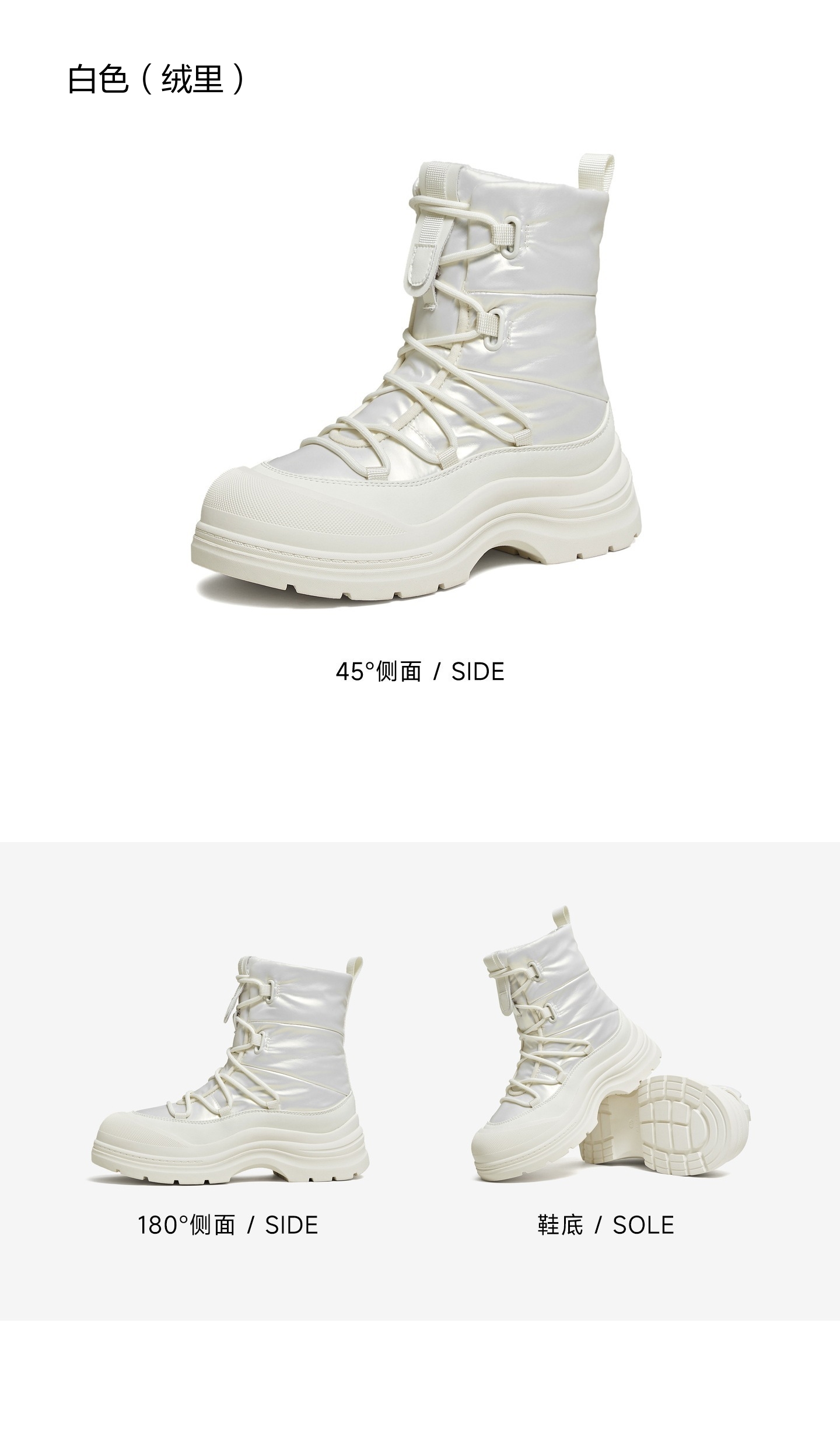 | 鞋底材质:橡胶底 | 靴筒内里材质:人造短毛绒 | 内增高:无 | 鞋面材质:复合材料纺织品 | 闭合方式:系带 |
