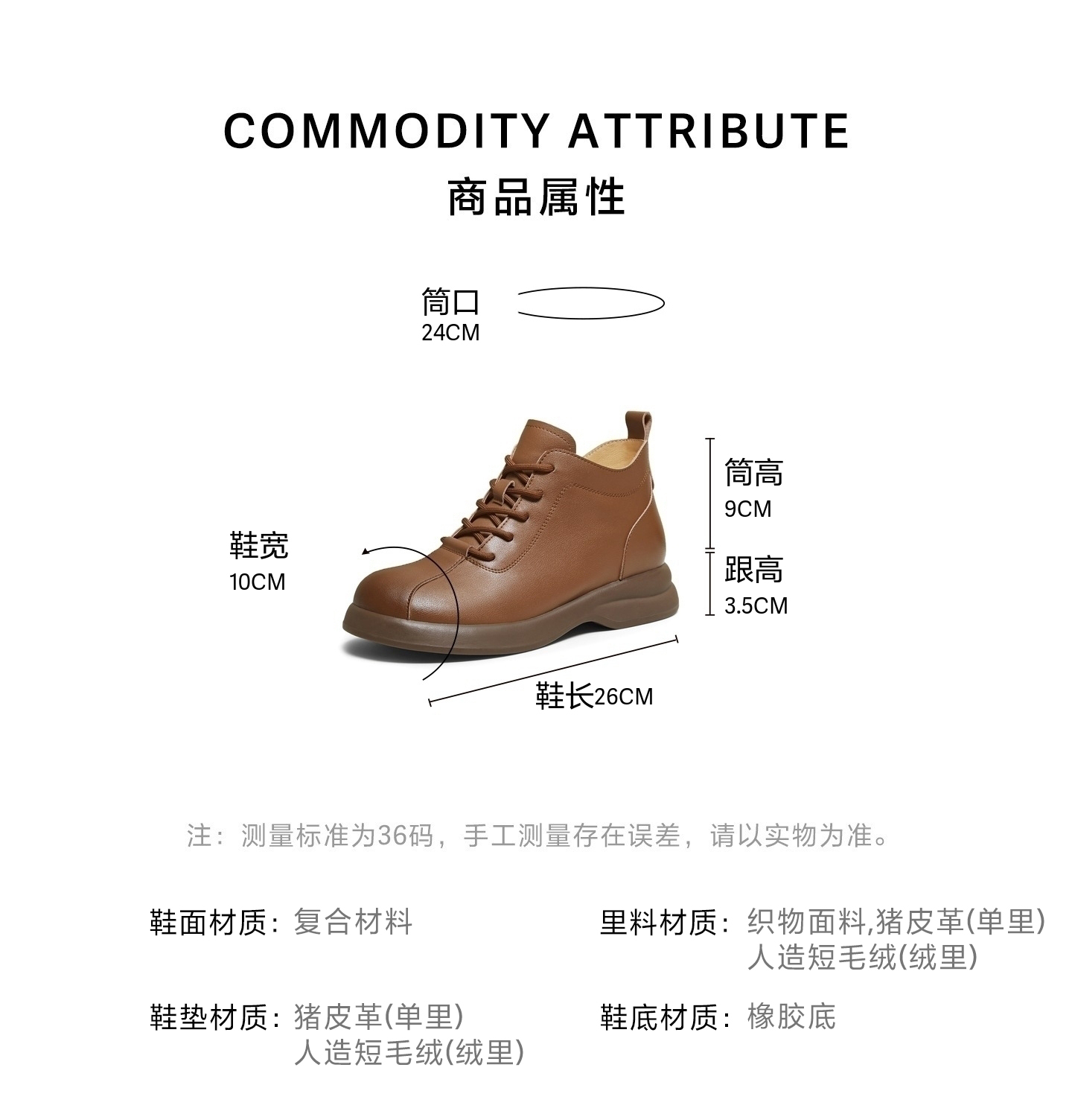 | 帮面材质:牛剖层革 | 配跟:有 | 靴筒口围:24CM | 上市时间:2026年春季 | 鞋类流行款式:马丁靴 |