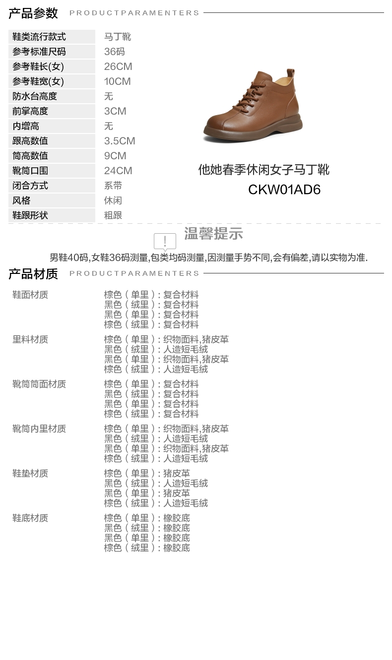 | 参考鞋宽(女):10CM | 风格:休闲 | 色系:棕色 | 跟高数值:3.5CM | 筒高数值:9CM |