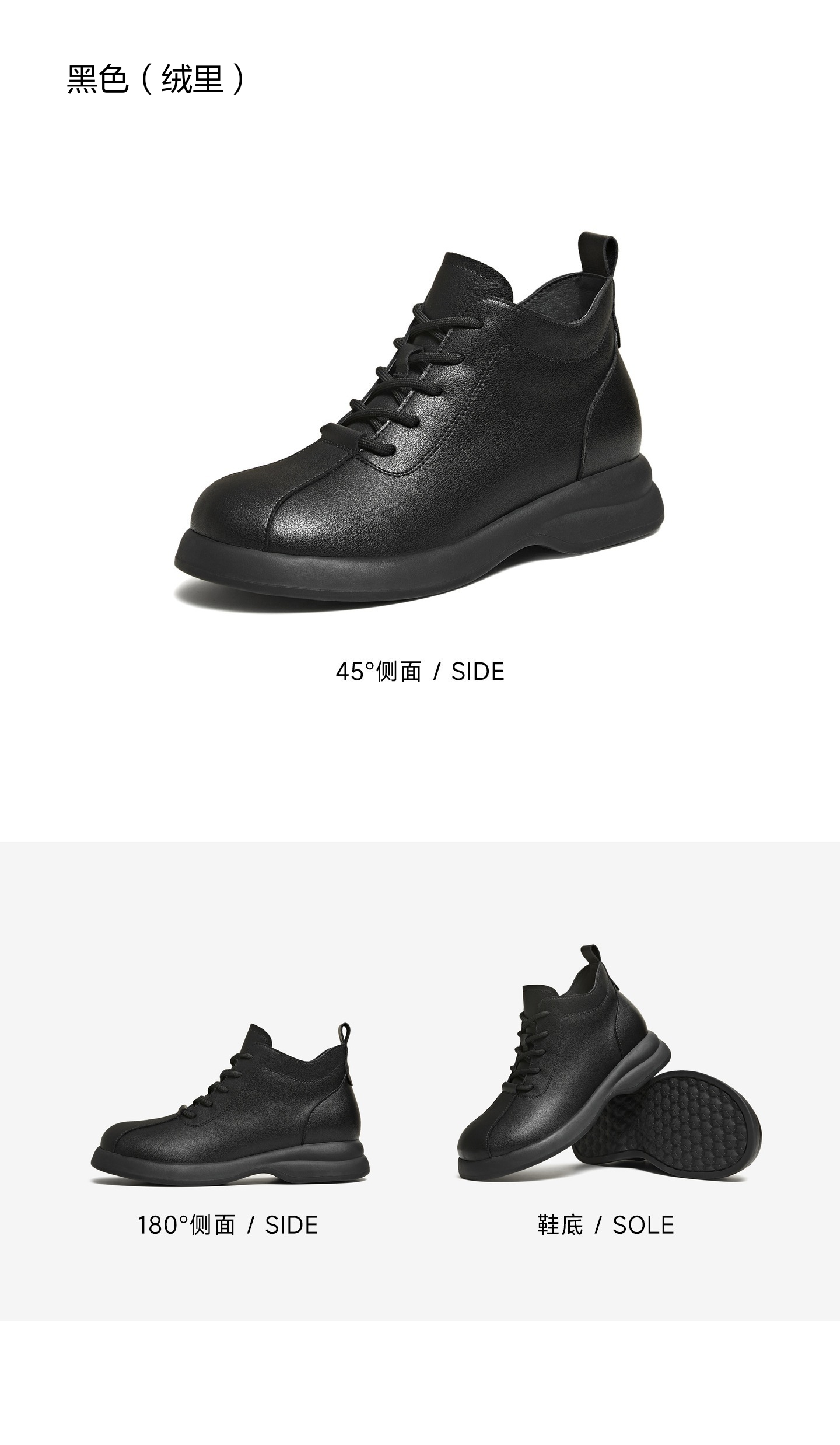| 鞋底材质:橡胶底 | 靴筒内里材质:织物面料猪皮革 | 内增高:无 | 鞋面材质:复合材料 | 闭合方式:系带 |