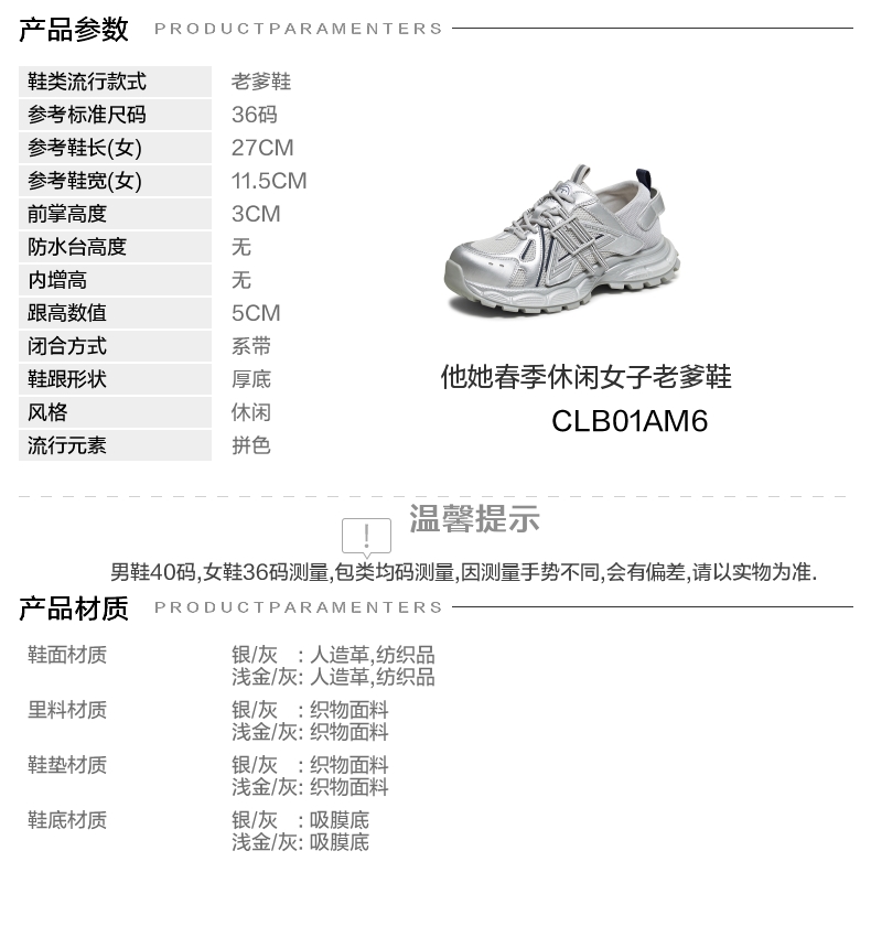 | 配跟:无 | 上市时间:2026年春季 | 鞋类流行款式:老爹鞋 | 鞋头款式:圆头 | 鞋面图案:拼色 |
