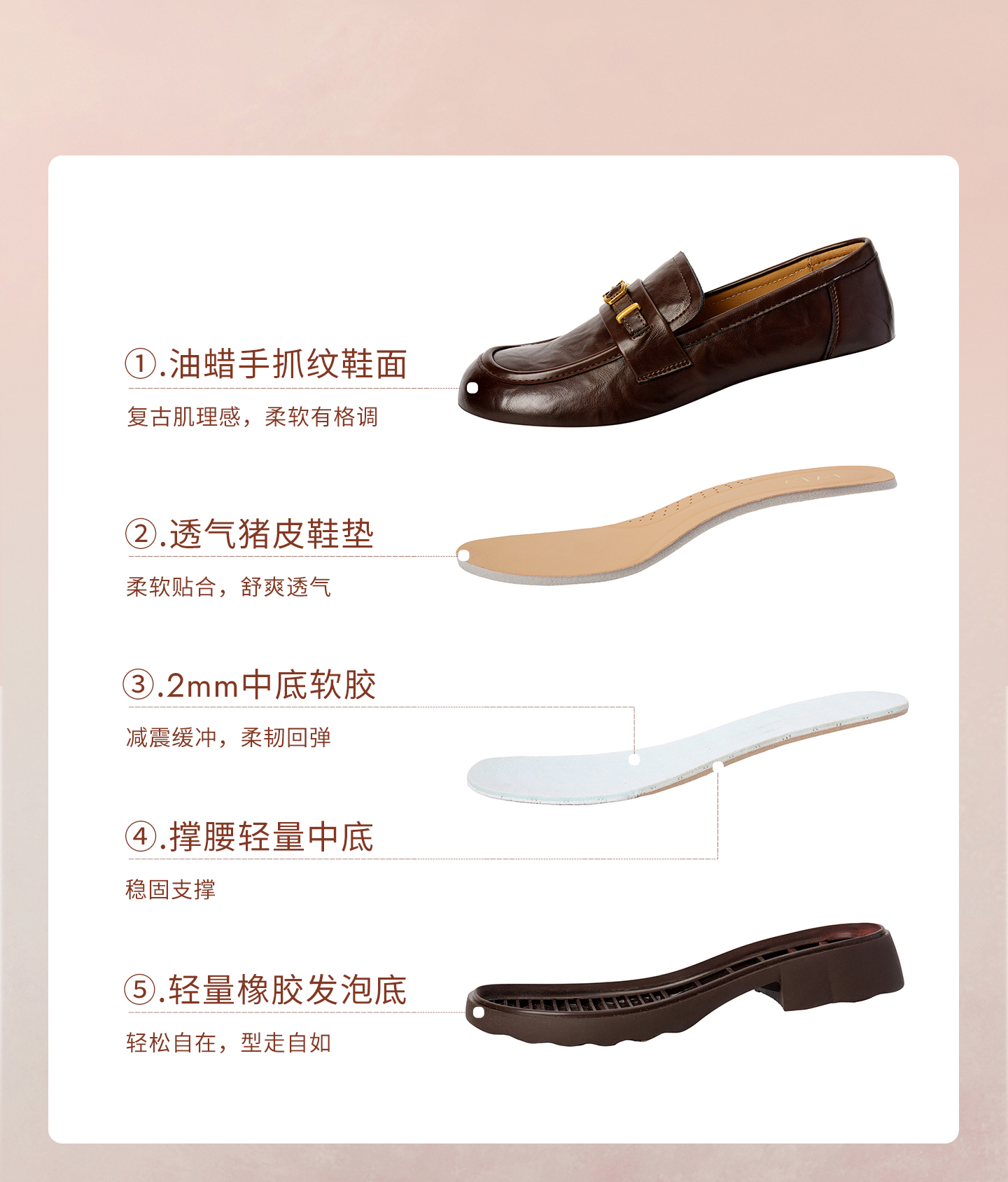 制鞋工艺:胶贴皮鞋 鞋垫材质:猪皮革 款式季节:春季 前掌高度:2.5CM 皮质特征:软面皮