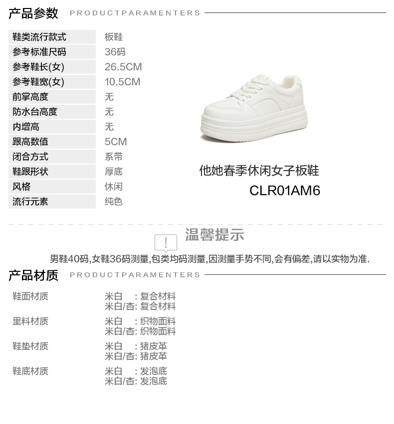 | 鞋跟形状:厚底 | 参考鞋长(女):26.5CM | 流行元素:纯色 | 参考鞋宽(女):10.5CM | 风格:休闲 |