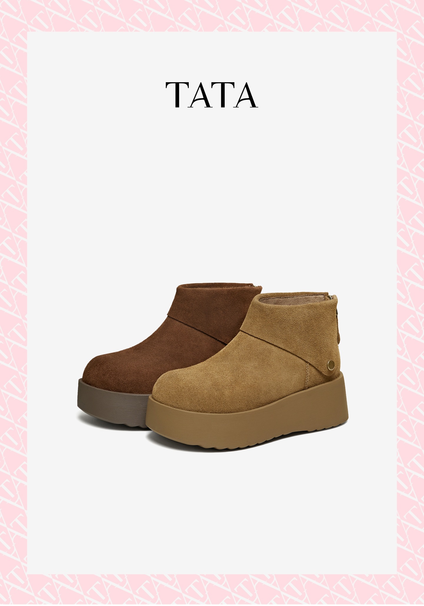 他她(Tata),品牌成立于2003年,致力为都市年轻人群提供时尚潮流、具有性价比的鞋履产品。十五年来“踏踏”的着地声,寓意都市白领元气满满的生活,如时尚“伴履”的TATA一直陪伴左右、伴随走出TATA的时尚步伐。2017年TATA美丽蜕变,TATA STAR元素的加入预示品牌将成为闪亮、前端的时尚鞋履品牌。