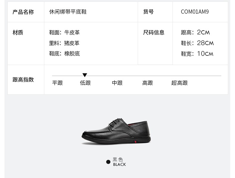 | 色系:黑色 | 跟高数值:2CM | 40码鞋宽参考(男):10CM | 性别:男子 | 里料材质:猪皮革 |