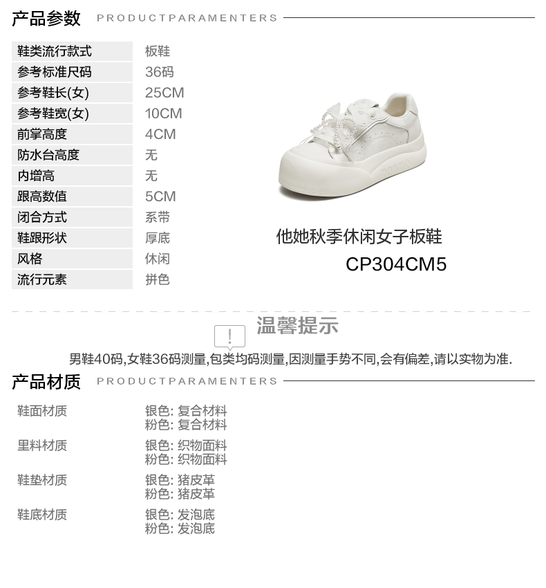 | 鞋跟形状:厚底 | 参考鞋长(女):25CM | 流行元素:拼色 | 参考鞋宽(女):10CM | 风格:休闲 |